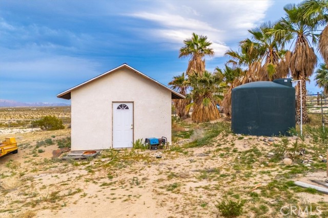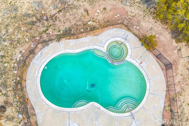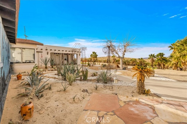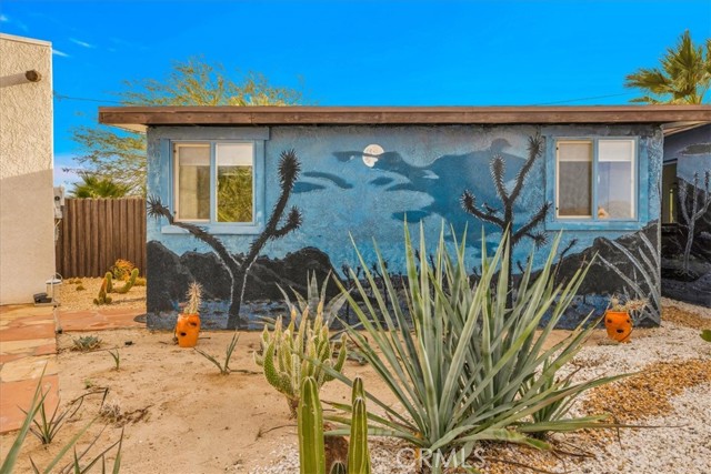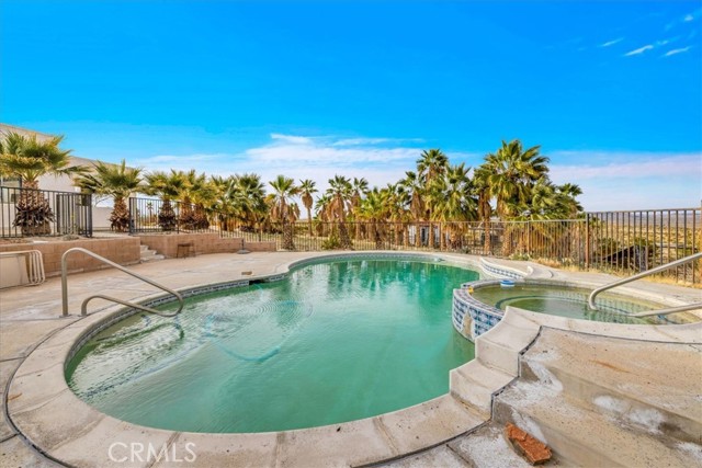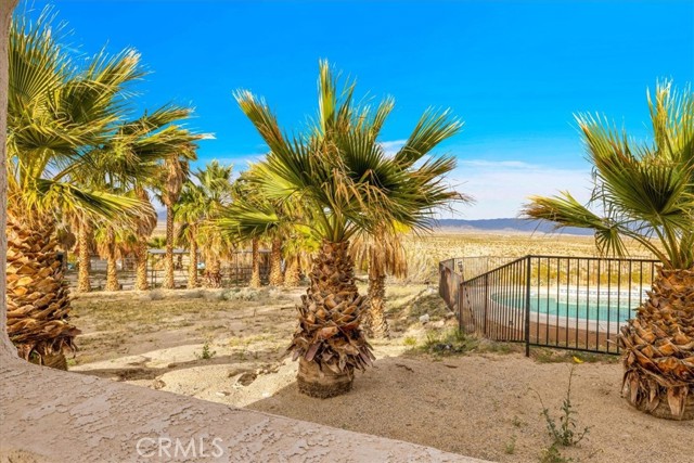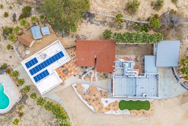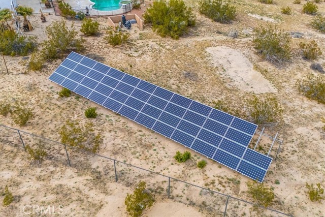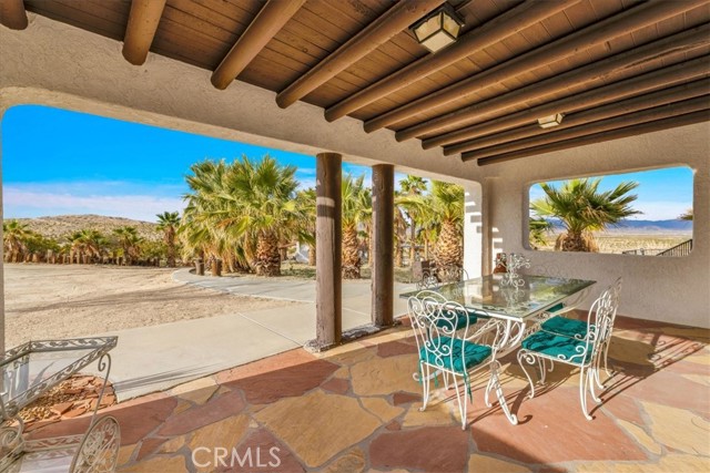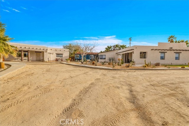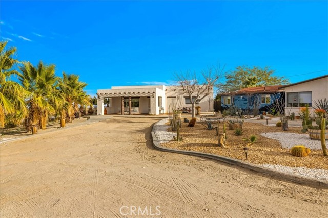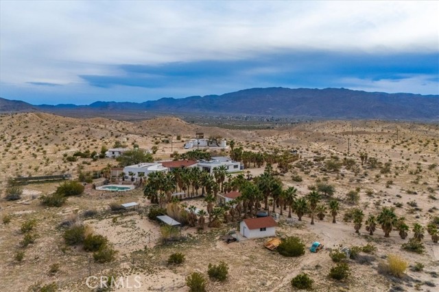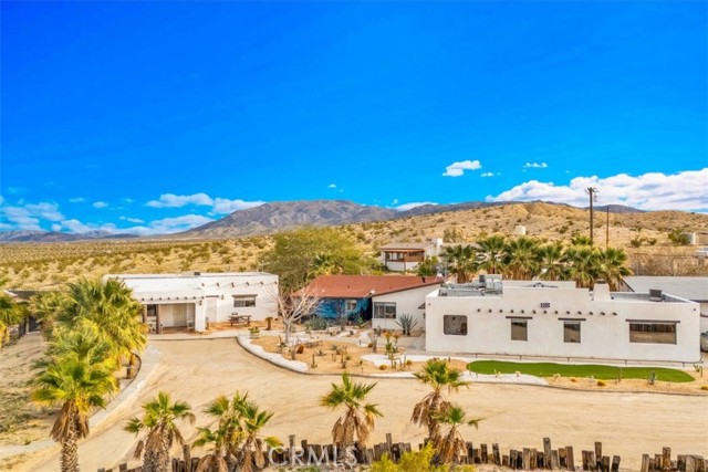 Drive down the private palm tree lined driveway to two original adobe homes. Located in the desirable Campbell Hill neighborhood of Twentynine Palms, this 13+ acre desert property offers two residences totaling four bedrooms and three bathrooms, along with equestrian improvements, paid solar, and sweeping panoramic views. Originally built in 1946 with thick adobe construction, the main residence features two bedrooms and two bathrooms, expansive living areas, and a large kitchen with extensive cabinetry and counter space. Multiple gathering rooms center around a stone fireplace, and large windows frame desert and mountain views. A separate two-bedroom, one-bath guest residence provides additional flexibility for extended living, guests, or potential rental use. Outdoor amenities include a covered courtyard patio, detached two-car garage, and an in-ground pool and spa positioned to capture broad valley views. Approximately 13.2 acres are fully fenced and include corrals, a two-horse stable, tack room, and additional outbuildings. Improvements include paid solar panels and a private well system. The property is partially furnished. Don't miss this one of a kind desert gem! Buyer to verify all information including square footage, utilities, well production, zoning, and intended use.