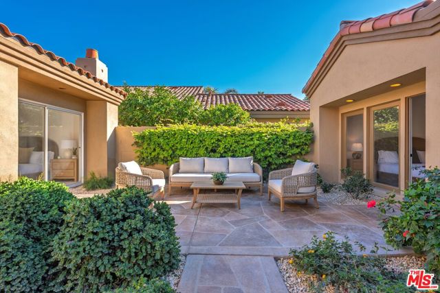 Desert Dream...come and enjoy this totally remodeled & furnished 4 bedroom ensuite property; including a private Casita and guest powder room! The stunning setting of the home is perfectly positioned to capture views of the magnificent Chocolate & Santa Rosa Mountain ranges and the world-famous PGA golf courses. It's also just a short golf-cart ride away to the private PGA West Club House. The beautifully landscaped courtyard greets you and leads you into the celebrity-designer space. The fully-remodeled interior incorporates exquisite high-end finishes, an expansive living room & dining room and a gourmet kitchen enhanced with new cabinetry, porcelain counter tops, chef-quality appliances and European tile work. An adjacent family room is thoughtfully designed for relaxed gatherings and entertaining. Four spacious bedrooms and a detached Casita provide comfort and privacy; ideal for visiting guests, a private office, fitness studio, or creative space. The estate seamlessly blends refined luxury with serene desert living which is absolutely flawless in every detail. In addition to the interior design upgrades, the property has new dual HVAC systems and new ducting, a two car garage, a golf cart garage and room for a private pool & spa. HOA fees include landscaping, exterior watering, roof maintenance, exterior paint & stucco, pest control, internet, cable and 24-hour guard gated security. Whether for full-time living, lively entertaining, a seasonal escape, or a savvy investment, this exclusive La Quinta residence is rare, refined, and truly in a class of its own.