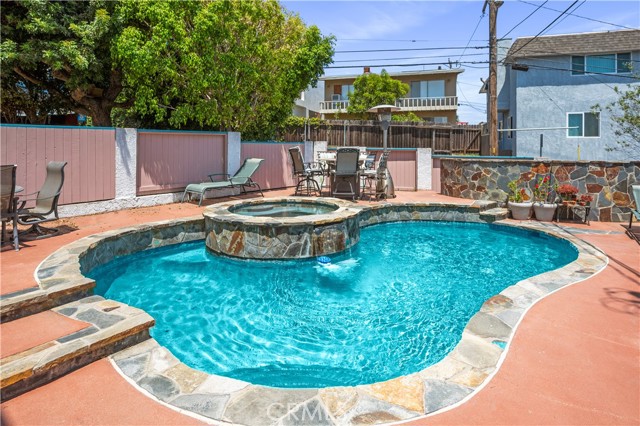 Live the Hermosa Beach Lifestyle—With Ocean Views! Welcome to this large bright, open living space, a private pool and jacuzzi, and amazing ocean views from multiple areas of the home. The open floor plan flows seamlessly from the living room—with a fireplace and view-facing patio—to the spacious dining area and well-appointed kitchen, perfect for entertaining or everyday comfort. The kitchen features abundant storage, ample counter space, a built-in cooktop and oven, and a breakfast nook with views of the Pacific. A cozy family room opens directly to the private backyard oasis, complete with a built-in barbecue area, pool, and spa, creating the perfect indoor-outdoor lifestyle. Upstairs, two secondary bedrooms each offer their own en-suite baths and overlook the beautifully landscaped backyard. The primary suite is a true retreat, featuring ocean views, a private balcony, walk-in closet, and a luxurious bath with double vanities, spa tub, and separate shower—ideal for unwinding with a glass of wine as you watch the sun set over the ocean. Additional highlights include a 2-car garage, rare parking for several vehicles behind the garage(at least 4 maybe more), a dedicated laundry room, and a quiet, private location on a cul-de-sac just walking distance to downtown Hermosa Beach shops, restaurants, and nightlife, with the sand and pier a little further down the road. Homes like this rarely come to market—don’t miss your chance to make this your own private beach retreat.