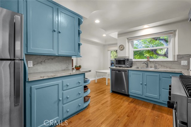 Timeless Mid-Century California Ranch pool home. Your own private escape South of the Boulevard. Set on a lush 10,306-square-foot lot in the foothills of the Hollywood Hills, this single-level retreat offers 3 bedrooms, 2 baths, and approximately 1,806 square feet of effortless indoor-outdoor living. From the moment you arrive, manicured landscaping and mature greenery create a sense of calm and privacy. Inside, warm wood floors, abundant natural light, and thoughtful designer touches set the tone for a home that feels both relaxed and refined. The open, flowing layout invites connection perfect for slow mornings, lively gatherings, and everything in between. The heart of the home is the gourmet kitchen, where stainless steel appliances, generous cabinetry, and seamless flow into the breakfast nook and dining area make everyday moments feel special. Whether it's coffee at sunrise or dinner with friends, the space is designed to be lived in and loved. Step outside and the lifestyle truly comes alive. A spacious patio, charming swing set, and sparkling heated pool are surrounded by lush landscaping, creating a private oasis for sun-soaked afternoons, weekend entertaining, and peaceful evenings under the stars. Newly painted inside and out, the home offers a fresh, move-in-ready feel from day one. Just minutes from major studios, the Hollywood Bowl, and the vibrant dining and shopping along Ventura Boulevard, this home delivers the rare balance of quiet retreat and urban energy. This is more than a place to live it's a way of life. Welcome to your Mid-Century sanctuary in the heart of the Hollywood Hills ! (Housing provider lives in separate guest unit attached to the home)