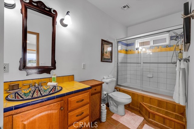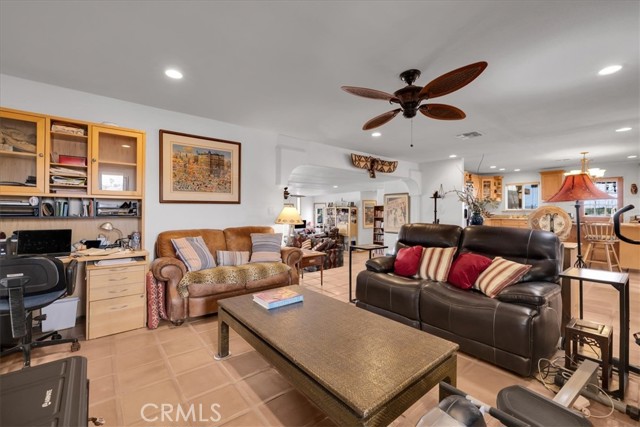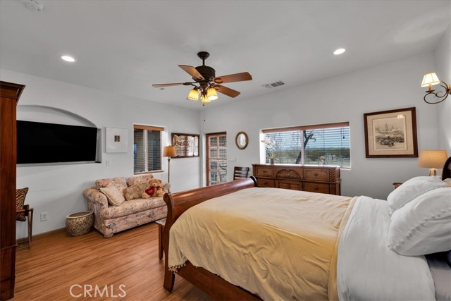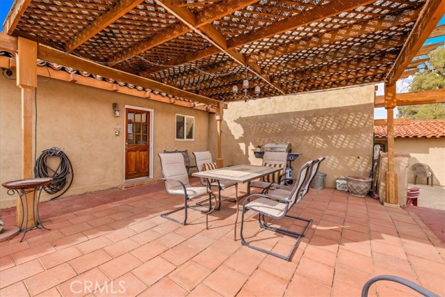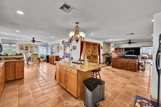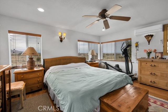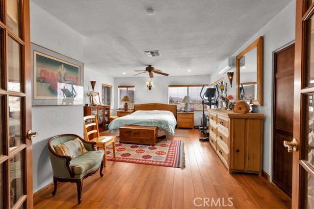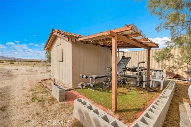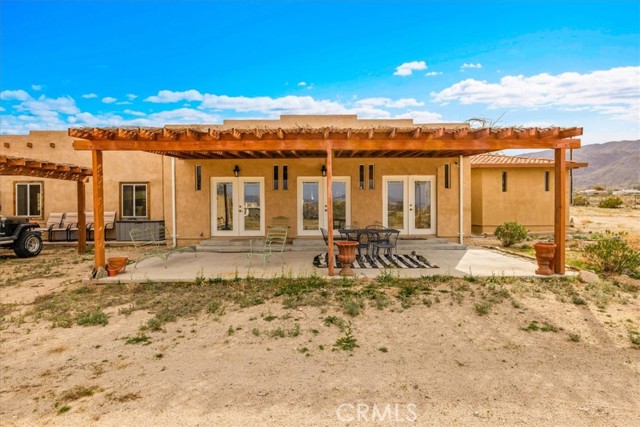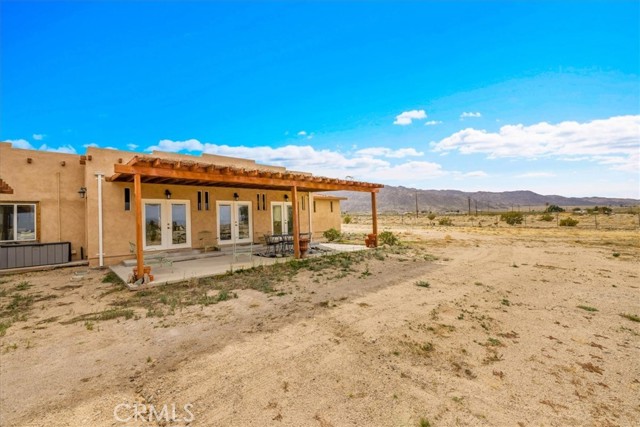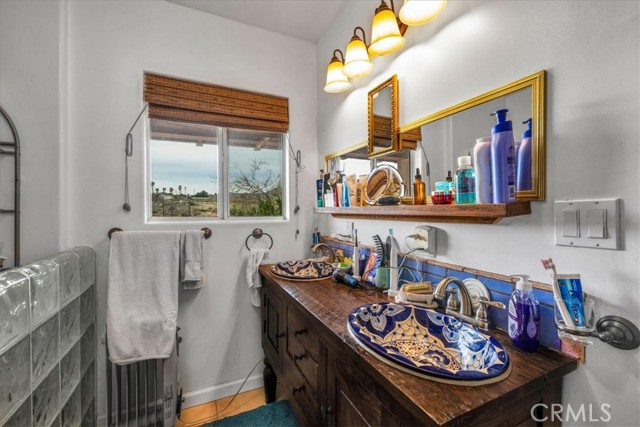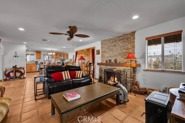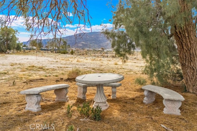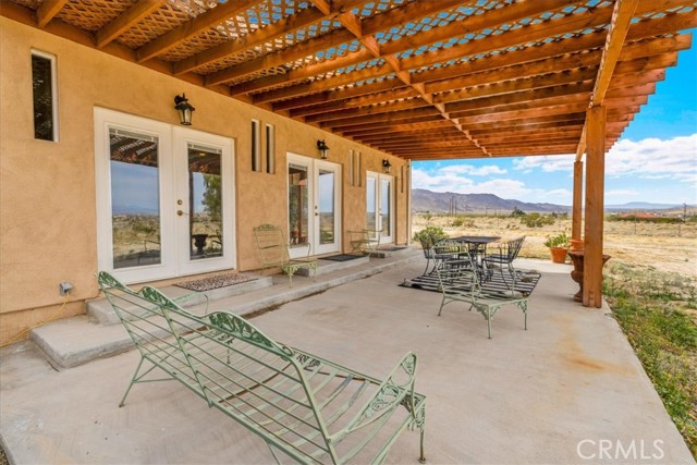 Located in the desirable Hanson Area on Foothill Drive, just minutes from the Joshua Tree National Park Visitor Center, this approximately 5-acre foothill property offers privacy, space, and sweeping desert views. The single-story residence spans approximately 2,421 square feet with three bedrooms and three bathrooms and an additional half bath. A gated courtyard entry leads into an open floor plan featuring Saltillo tile flooring, recessed lighting, and expansive gathering spaces designed for indoor-outdoor living. The kitchen includes granite countertops, a center island, range, oven, microwave, dishwasher, and generous cabinetry. The dining and living areas flow seamlessly to French doors that open to patios positioned to capture the surrounding mountain and valley views. Each bedroom includes its own bathroom, with private exterior access from multiple rooms, creating flexibility for guests or extended living arrangements. The property is served by septic and offers city water connection. Central heating and air conditioning are installed, along with evaporative cooling. Propane is used for central heating, with electric systems serving the remainder of the home. Additional features include a detached garage, security gate, rain gutters, fireplace, and a large shipping container that conveys with the property. Set near hiking trails, open land, and park access, this Foothill Drive location combines foothill elevation, proximity to town, and desert privacy. Buyer to verify all information including square footage, utilities, well production, zoning, and intended use.