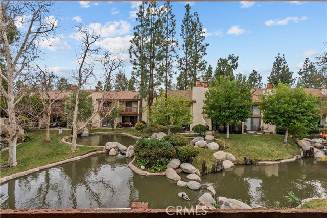 Welcome home to a bright, easy-living 2-bedroom, 2-bath condo where the view is part of your everyday. The open floorplan flows seamlessly from the living room to a slider that opens to your private patio, perfectly positioned to take in the peaceful stream, waterfalls and lush landscaping—complete with koi, turtles and ducks gliding by. At the heart of the home is a beautiful new kitchen with quartz countertops, bar seating, and an open connection to the living area—ideal for hosting, homework at the counter, or slow weekend mornings. Laminate wood flooring adds a clean, modern look throughout, and big-ticket upgrades bring confidence with a newer A/C and new water heater. Both bedrooms are designed for comfort and privacy, each featuring its own attached balcony—a rare bonus for fresh air, quiet moments, and that “I can breathe here” feeling. A detached garage rounds out the convenience. Enjoy resort-style community amenities including a pool, tennis courts, gazebo, and beautifully maintained grounds that make every walk feel like a mini getaway. This is more than a townhome—it’s a lifestyle you’ll look forward to coming home to.