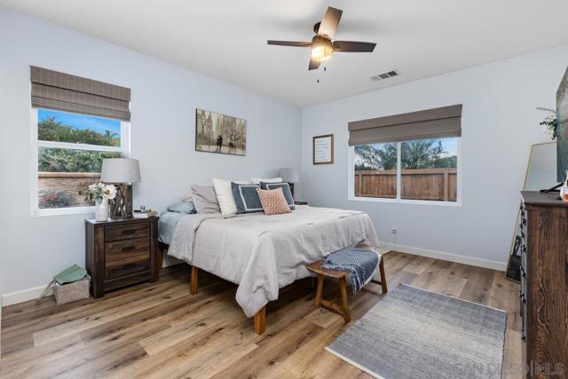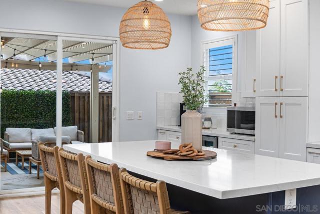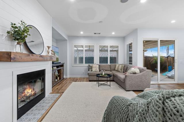 Welcome to the highly sought-after Ravina neighborhood of Calavera Hills, where modern upgrades meet coastal convenience in the heart of Carlsbad. This beautifully updated home showcases a stunning, recently remodeled kitchen featuring bright white cabinetry, sleek white countertops, brushed gold accents, stainless steel appliances, and a large center island perfect for gathering and entertaining. The kitchen flows seamlessly into the expansive living space, where gorgeous wide-plank wood flooring, light gray designer paint, crisp white baseboards, and abundant natural light create a fresh, airy ambiance. A cozy fireplace with a charming wood mantel anchors the room, adding warmth and character. The thoughtfully designed floor plan offers exceptional functionality, with the spacious primary suite conveniently located on the main level, providing privacy and ease of living. A fourth bedroom — currently styled as a home office — is also situated on the first floor, ideal for remote work or guest flexibility. Upstairs, you’ll find two additional bedrooms and a full bathroom, creating comfortable separation and space for family or guests. Plush carpet in the bedrooms adds warmth and comfort throughout. Recent improvements include beautifully remodeled bathrooms, updated flooring, fresh interior paint, custom window treatments, upgraded doors, and enhanced landscaping — delivering a truly move-in-ready experience. Situated on a desirable corner lot in a low-maintenance setting, residents of Ravina enjoy access to the community pool and nearby parks. Outdoor enthusiasts will appreciate close proximity to Calavera Lake and Preserve, offering scenic hiking and biking trails. Walking distance to highly rated Sage Creek High School and near top Carlsbad schools. Enjoy the best of North County living with easy access to Carlsbad Village, award-winning beaches, The Flower Fields, LEGOLAND, shopping, dining, and major commuter routes. Nearby local favorites like Campfire, Eureka!, The Goods, and popular breweries contribute to the vibrant coastal lifestyle Carlsbad is known for. This is more than a home — it’s a lifestyle of comfort, convenience, and coastal charm.