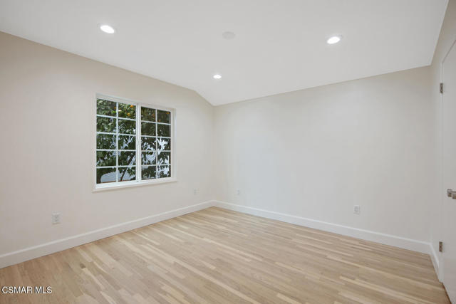 Welcome to this beautifully renovated and truly turnkey North Hollywood home offering 3 bedrooms and 2 bathrooms with approximately 1,320 square feet of comfortable living space on a spacious 6,000 square foot lot.Thoughtfully upgraded throughout, this home features major infrastructure improvements including all-new electrical wiring and panel, a new central HVAC system and a new tankless water heater--providing modern comfort and peace of mind. Inside, you'll enjoy refinished original hardwood floors, new dimmable recessed lighting, and new interior doors with updated hardware, creating a bright and inviting atmosphere. A lovely light and bright dining room adjoins a comfortable family room with fireplace, offering an ideal setting for everyday living and relaxed gatherings.The remodeled kitchen is ideal for entertaining, featuring custom soft-close cabinetry, porcelain countertops, a farmhouse sink with touchless faucet, a 36'' GE Monogram counter-depth refrigerator with water dispenser, and new appliances including oven, dishwasher and microwave. The remodeled primary bathroom offers all new Kohler fixtures, custom built-in cabinetry with dual sinks, quartz countertop and a new Kohler bathtub.Outside, enjoy a new concrete driveway with parking for up to six vehicles including the garage, a new garage door opener, replaced main water line, and freshly painted interior and exterior. The upgraded front entry and rear porch feature recessed lighting and beautiful tongue-and-groove ceilings, with the rear porch pre-wired for a ceiling fan. New landscaping and irrigation, Ring(r) security cameras, side-yard outlet that could be upgraded for vehicle charging. A covered patio leads to a lush green landscaped backyard featuring a mature Meyer lemon tree completes this welcoming home--conveniently located close to shopping and everyday amenities, with easy access to the 170, 101 and 405 freeways. Hurry, this one won't last!