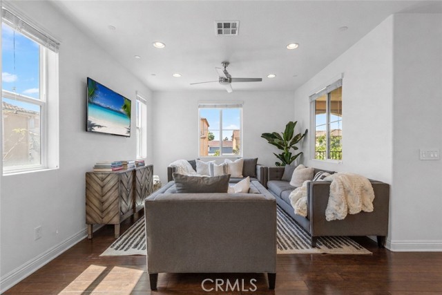Situated within the gated enclave of Newport Palisades, this thoughtfully designed tri-level residence offers a refined coastal lifestyle in one of Newport Beach’s most convenient locations. Built in 2013 and meticulously maintained, the home features three bedrooms and four bathrooms, including a main-level bedroom suite ideal for guests or a private office. The open-concept main living level connects the kitchen, dining, and living areas in a seamless flow, creating an ideal setting for both everyday living and entertaining. The chef’s kitchen is anchored by a generous center island with bar seating, stone countertops, stainless steel appliances, and ample cabinetry. Hardwood and tile flooring, recessed lighting, and central air conditioning enhance the home’s clean, modern aesthetic. Upstairs, two spacious bedroom suites include a well-appointed primary retreat with a spa-inspired bath. A dedicated laundry area and direct-access two-car garage add to the functionality. The private rear patio offers a quiet outdoor setting with custom hardscape and a fireplace, ideal for relaxed evenings at home. Located just minutes from Newport’s beaches, Fashion Island, the Balboa Peninsula, and major freeways, this residence delivers comfort, privacy, and accessibility within a secure gated community.