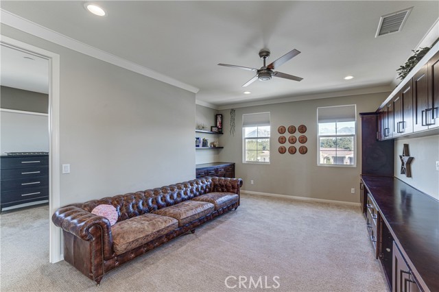 Former model home offers a rare combination of design, comfort, and energy efficiency. Built in 2017 as the community’s original main model home and office, the residence showcases premium upgrades throughout. The home features 4 bedrooms, 3.5 bathrooms, a built-out balcony and patio, and a versatile flex space with custom cabinetry near the garage: ideal for a home office or professional workspace. The open floor plan is filled with natural light from large windows, highlighting modern finishes and spacious living areas. The property includes paid Tesla solar panels, dual Powerwalls, an EV charger, and custom blackout blinds on all windows and sliding doors. The home is fully energy self-sufficient, eliminating utility costs year-round. Situated on a 0.33-acre lot at the highest point in the community, the home offers privacy, quiet surroundings, and scenic views. The expansive lot provides generous outdoor space and side-yard parking. This home is ideal for professionals seeking a high-quality, low-maintenance residence in a desirable Redlands location.