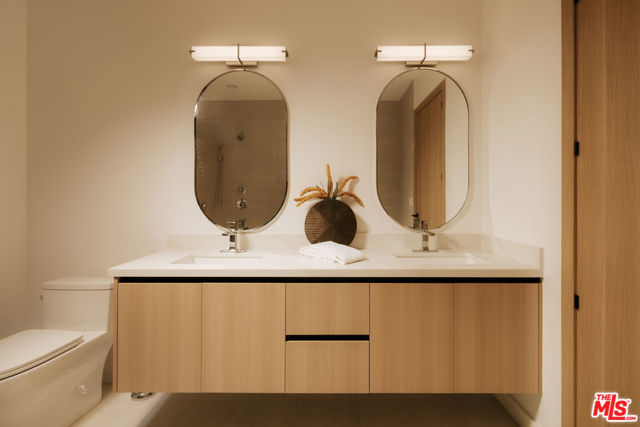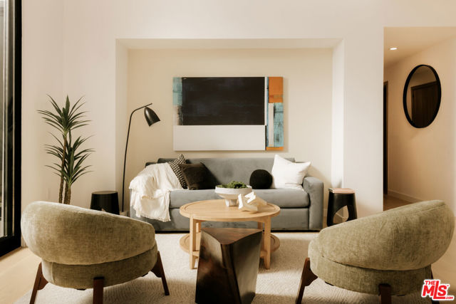 Atria is a collection of sixteen modern residences tucked into the hills of Silver Lake, offering a thoughtfully curated take on contemporary California living. Clean architectural lines meet warm, livable interiors, creating homes that feel both elevated and effortlessly comfortable. Enter Residence 103 through a private green courtyard, one of just three in the development. Expansive sliding glass doors open to a dramatic great room with double-height ceilings and a mezzanine level perfect for a family room or office. Abundant natural light fills the space, highlighting white oak finishes that bring warmth to the contemporary design. The chef's kitchen is outfitted with a full suite of integrated appliances concealed within paneled cabinetry, complemented by refined quartz countertops and a generous peninsula.The primary suite features a spacious walk-through closet and a spa-inspired bathroom with dual vanities, a freestanding tub, and a walk-in shower. Two additional bedrooms, a laundry closet, and a powder room complete the residence. Each home also includes two dedicated parking spaces and a private storage unit. Positioned in the heart of Silver Lake, Atria offers easy access to some of Los Angeles' most sought-after lifestyle destinations. Moments from Griffith Park and the Silver Lake Reservoir, residents enjoy a rare blend of outdoor recreation and urban convenience. The highly walkable neighborhood is filled with beloved cafes, restaurants, and boutiques, with Sunset Junction, Atwater Village, Glendale, Downtown Los Angeles, and Hollywood just a short drive away.