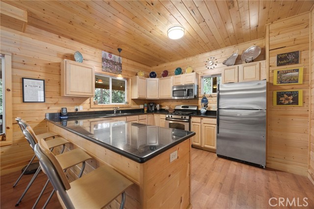 Nestled in the woods of Alta Sierra, this 4-bedroom cabin offers a refined blend of rustic charm and modern comfort designed to welcome families, create lasting memories, and perform beautifully as a vacation retreat. The kitchen features granite countertops and stainless-steel appliances, and the open layout makes entertaining a breeze. With ample space for the entire family, you'll love the wraparound decking that invites outdoor living year-round. Minutes from the ski resort and 15 minutes to the lake, this home is ideal for year-round adventures. Inside, a thoughtfully designed floor plan provides flexible sleeping arrangements, a dedicated entertainment corner, and cozy nooks for reading or relaxation. The surrounding pines create a serene backdrop while you enjoy easy access to outdoor activities, dining, and nearby amenities. A practical basement storage area offers additional space for gear and belongings, helping keep your living areas uncluttered and organized.