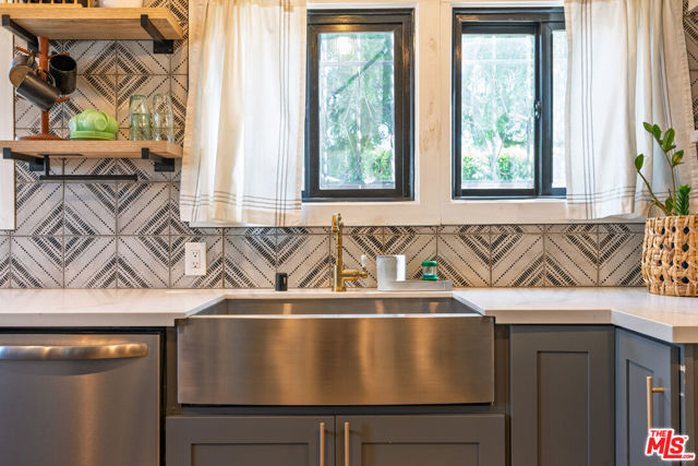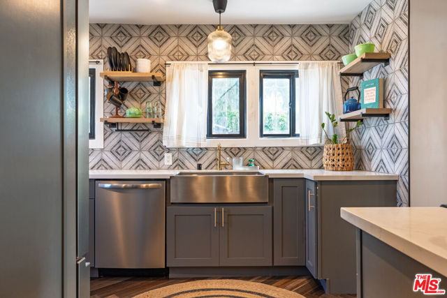 If you are looking for style, character, and a home that feels effortlessly put together, this updated Craftsman bungalow in the heart of Jefferson Park delivers. The bright, airy living room centers around the tiled fireplace with original built-ins and flows easily to the generous dining room anchored by a statement chandelier. There's a remodeled kitchen featuring upgraded cabinetry, quartz countertops, and stainless steel appliances, while the bathroom keeps its classic lines with a fresh, contemporary edge. New energy-efficient mini-split systems in both the living room and bedroom provide year-round comfort while drought-tolerant landscaping and a compact lot help keep maintenance simple and utility costs low. The driveway leads to a one-car garage that in another life could become a home gym, creative studio or workspace. Major upgrades include foundation, plumbing, roof, tankless water heater, and beautiful wood floors. Appliances installed in 2021, including stove, refrigerator, washer, dryer, microwave, and dishwasher, can be included. The great location puts you moments from Expo/Crenshaw transit, USC, the Expo Line bike path, Leslie Shaw Park and everything you love in the dining and coffee scene of West Adams, Jefferson Park and Mid City: including the highly reviewed Maydan Market, Highly Likely and Harold & Belle's. Good access to grocery stores, gyms and super close to Kenneth Hahn Park with hiking/bike trails, lake and picnic areas. Such a beautiful home offering a strong entry point into one of central LA's most connected and evolving neighborhoods.