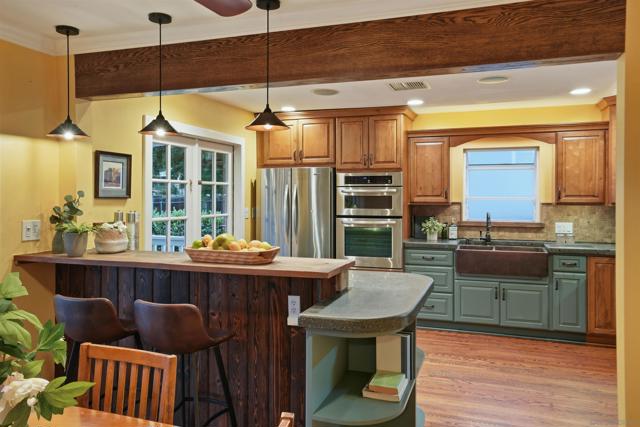 "Old School Escondido Lot, Deep, Private, Pool, Character, Solar." They do not make lots like this anymore. The picturesque approach from the street begins with a white picket fence, defined front yard, driveway, and attached garage welcoming you home. All of it is framed by a stunning mature California pepper tree that provides generous shade, privacy, and the perfect spot for a classic front yard swing. Inside, the kitchen has been thoughtfully updated with hardwood flooring throughout, distinctive concrete countertops, updated cabinetry, a copper sink, and an entertaining bar that makes cooking feel like part of the gathering. Both bathrooms have been custom remodeled, each with its own unique design. The hall bath features a soaking jetted tub, offering a comfortable space to unwind at the end of the day. The backyard is the true differentiator. Long, private, and open, with no neighbors directly behind you. A covered elevated porch flows from double French doors off the kitchen and dining area, creating an easy indoor-outdoor connection. A perfectly sized pool anchors the hardscape, while a gazebo overlooks the second half of the yard, open, grassy, and ready for future possibilities. Mature citrus trees, olive bushes, and established landscaping complete the setting. WHAT WE LOVE: (CONT…) 1133 W. 13th Avenue blends preserved character with meaningful updates in a quiet residential pocket of Escondido. The home sits set back from the street behind a charming front yard centered by a dramatic mature California pepper tree, offering shade, privacy, and undeniable curb appeal. Inside, small plank red oak floors run throughout the main living areas. The living room retains its original wood divided light picture window and centers around a custom stone and wood fireplace. The kitchen has been updated with two tone cabinetry, concrete counters, stainless steel appliances, double ovens, a copper sink, a breakfast bar island with natural stone detail, custom lighting and in-ceiling stereo system. French doors connect the dining and kitchen area directly to the covered rear porch. Both bathrooms have been remodeled with custom stone and tile finishes. The hall bath features a polished rock floor and soaking tub. The primary suite includes its own updated ensuite bath and north facing exposure for a cooler, calm retreat. The backyard is the true differentiator. Half improved with hardscape and pool, half open and fenced with mature shade trees, offering room for expansion, recreation, gardening, or future vision. No direct rear neighbor enhances privacy and openness. Additional highlights include solar, mature fruit trees, established landscaping, and an attached single car garage. For buyers who value land, character, and long term livability, this property offers a rare combination of space and authenticity that is increasingly difficult to find.