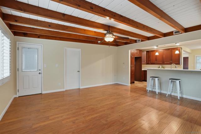 "Beamed Ceilings, Remodeled Kitchen + Tiered Backyard Living in a Prime La Mesa Pocket" WHAT WE LOVE: This is the kind of La Mesa home buyers wait for. Elevated from the street with low water landscaping, interlocking stone and brick hardscape, and classic plantation shutters, the curb appeal hits immediately. Inside, original small plank oak floors run through light filled living and dining spaces with fresh paint and recessed lighting. The remodeled kitchen features updated countertops, stainless appliances, updated cabinetry, and opens directly from the bar into a dramatic family room with exposed wood beams, tongue and groove ceiling detail, and a brick fireplace that anchors the space. Three bedrooms, an oversized updated bathroom with floor to ceiling tiled shower, and an attached one car garage complete the interior. Step outside to a covered patio with more custom brickwork, tiered landscaping, mature trees, privacy fencing, and an upper yard space ready for your vision. Detached living. Desirable pocket. Real backyard. The total package. WHAT WE LOVE (CONT…): 8741 Crockett Street blends preserved mid-century character with meaningful upgrades. Dual pane divided light windows allow natural light to fill the home, while plantation shutters provide both charm and function. The kitchen offers a clean, updated feel with stainless steel range, microwave, and dishwasher, breakfast bar lighting, and easy flow into the family room, making everyday living and entertaining seamless. The exposed beam ceiling and fireplace create a warm focal point rarely found at this price point. The oversized bathroom has been thoughtfully updated with modern vanity, undermount sinks, updated fixtures, tiled shower surround, and linen storage. Two of the three bedrooms maintain the integrity of the original oak flooring and include closet space and ceiling fans. The backyard offers multiple usable levels. A covered patio extends the living space outdoors, while the raised, landscaped tiers and upper yard provide flexibility for garden, play, pets, or future customization. Privacy fencing and mature trees frame the lot. Located in a well established residential pocket of La Mesa with convenient access to parks, shopping, dining, and commuter routes, this home delivers both lifestyle and long term value.