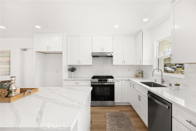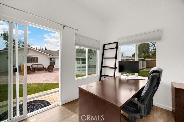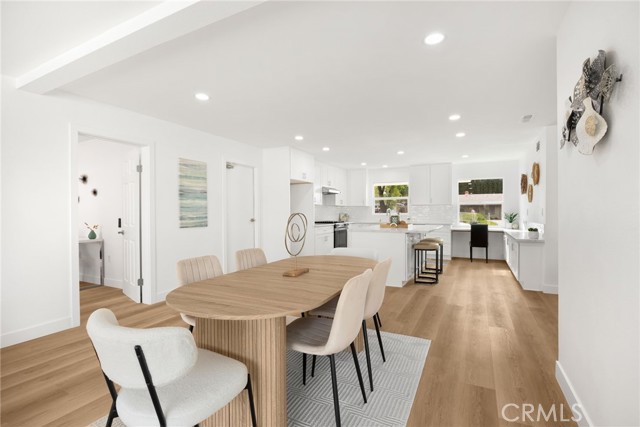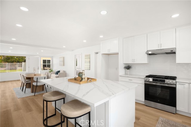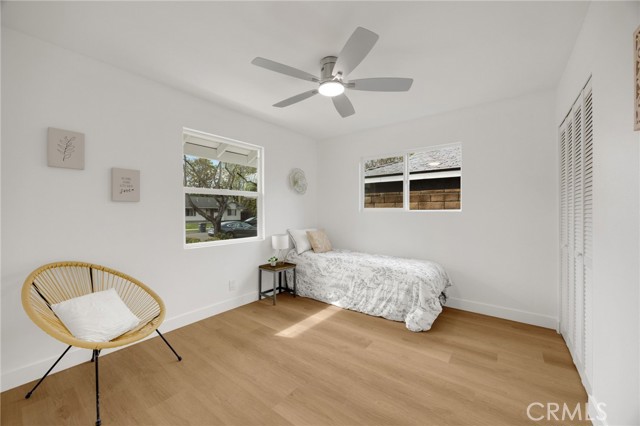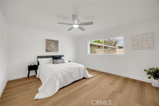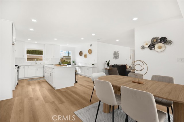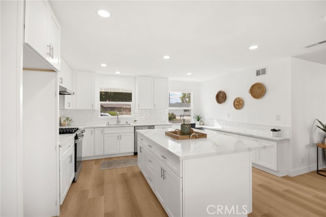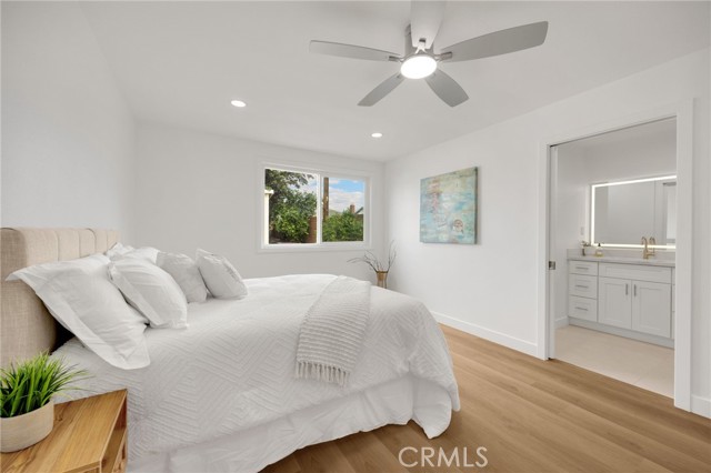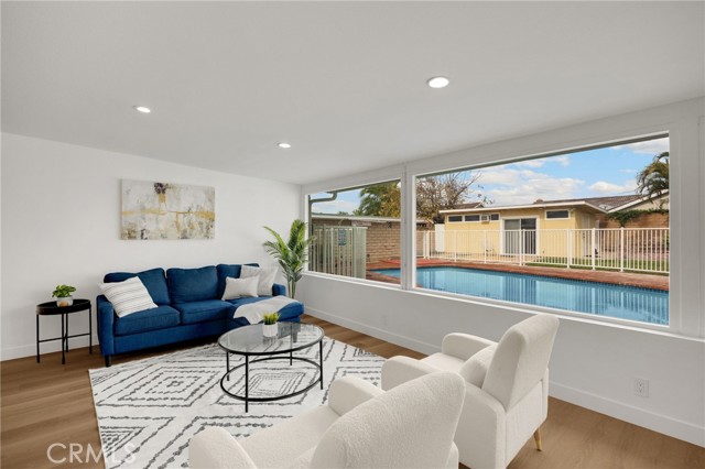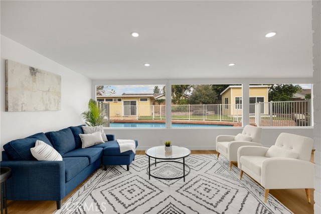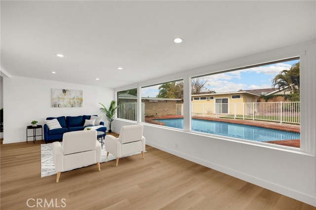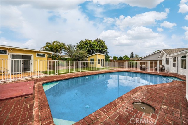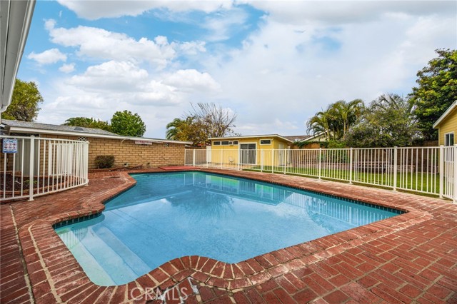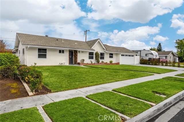 Rarely does a fully remodeled 5-bedroom home on a quarter acre with 2 primary suites, become available in this highly desirable Orange neighborhood near Villa Park, offering nearly 2,300 sq ft of single-level, step-free living ideal for multigenerational families. The spacious backyard includes a fenced pool, lawn, brick patio and 2 detached office pods. The open-concept layout is anchored by a stunning kitchen featuring a large island, breakfast bar, new stainless-steel appliances, custom subway-tile backsplash, quartz countertops, shaker cabinetry, extra storage cabinets, and a built-in desk with a window view, flowing into the living, dining, and family rooms that feature oversized windows and overlook a sparkling fenced pool. Upgrades include New: LVP flooring, windows, doors and moulding, fresh texture and paint, recessed lighting, ceiling fans, closet doors, fixtures, designer-tiled baths with frameless showers, and garage door. The generous lot offers a large front lawn with room to expand, a long driveway, back patio, lawn, raised garden, citrus trees, a pool equipment shed. Close to Old Towne Orange, Chapman University, the acclaimed Villa Park School District, and the upcoming redesigned Village at the Orange Mall, top shopping and dining, freeways.