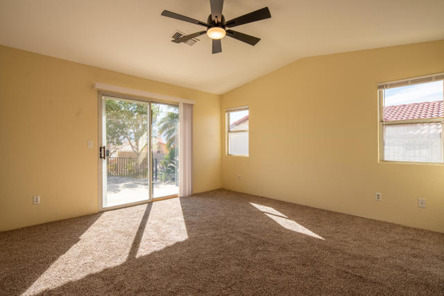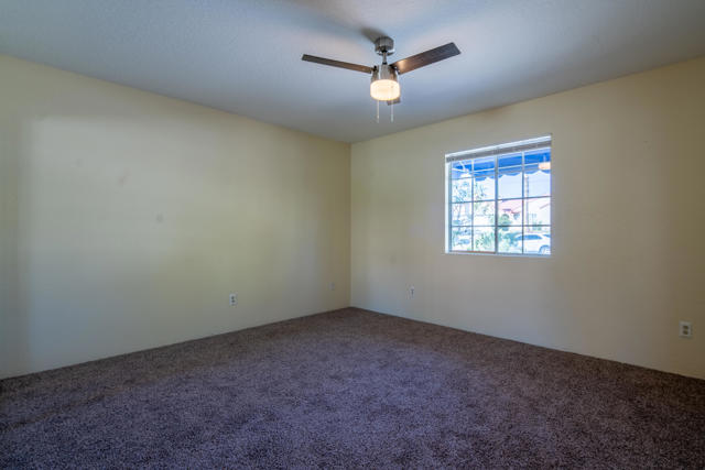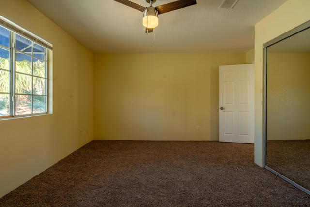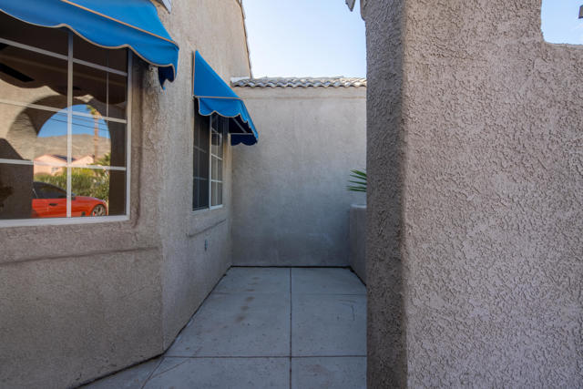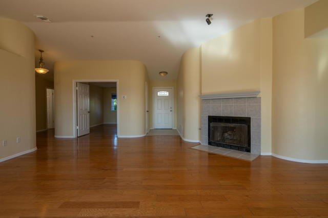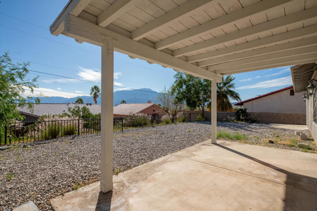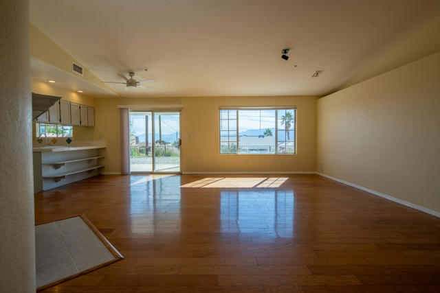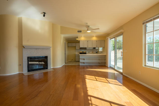 Exquisite mint-condition residence situated in a highly sought-after northwest neighborhood. Revel in breathtaking views of the San Jacinto Mountains from the backyard patio and private courtyard, ideal for relaxation or hosting gatherings. This meticulously maintained home boasts stunning plank hardwood floors, curved interior corners, and expansive hallways that contribute to an open, upscale ambiance throughout. The expansive kitchen is equipped with ample cabinetry, a pantry, tile flooring, and a convenient breakfast bar. Thoughtfully designed for comfort, the layout offers the equivalent of two primary suites, along with a generous den that can easily be converted into a third bedroom. The primary suite features a large soaking tub, separate enclosed shower, and abundant closet and storage space. A cozy fireplace in the living room enhances the inviting and elegant atmosphere of this exceptional home.