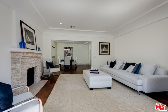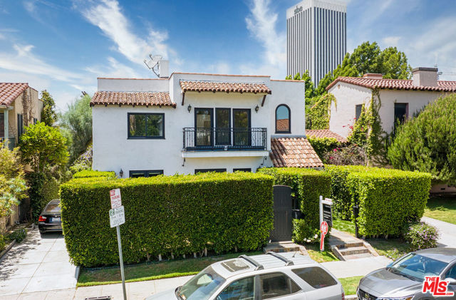 Custom Executive Duplex in Museum Square with a private dedicated front gate entrance and garden. This Spanish Revival features an open plan Kitchen, Dining and Living Room with decorative fireplace, a Chef's Kitchen with stainless steel professional appliances and Caesar Stone counters. Laundry in unit, 3 spa-like baths, wood floors, central A/C, and an exclusive-use private front yard. Moments to Cafes, The Grove, Beverly Center, and Museum.