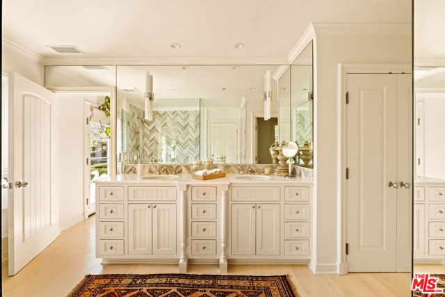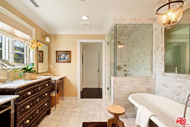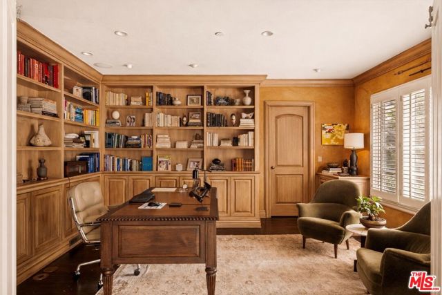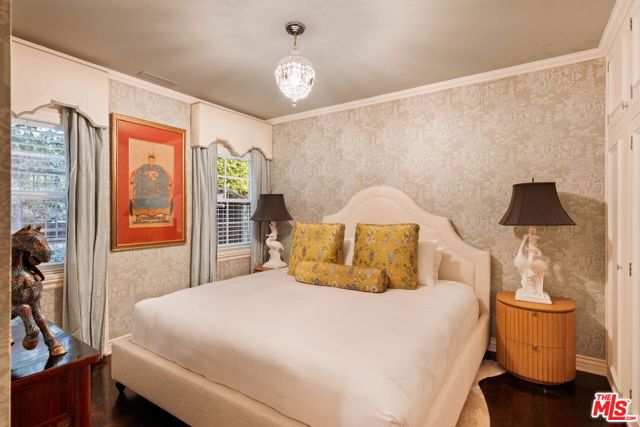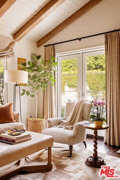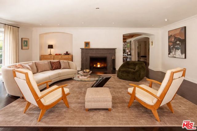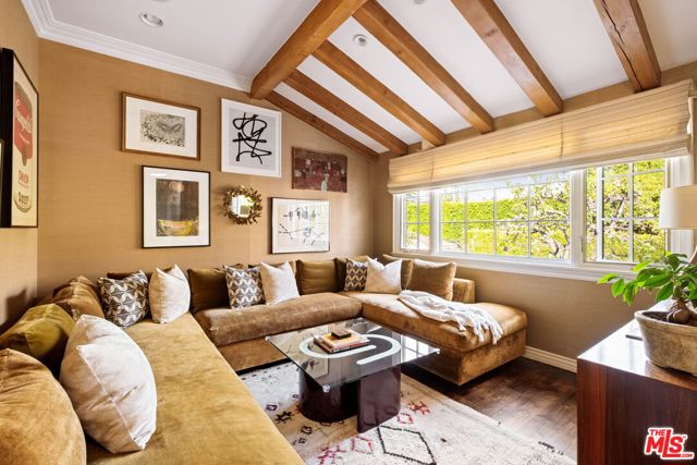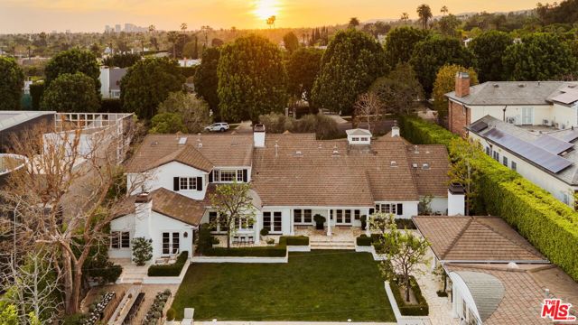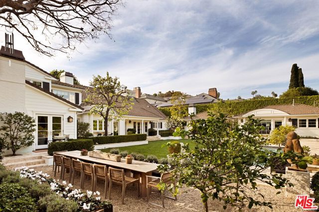 Elegantly reimagined by award-winning designer Wendy Haworth (Felix Trattoria, Stella, Gracias Madre), this Hamptons-inspired estate with a sought after guest house occupies the premiere mid-block position on the coveted 700 block of Arden Drive -- widely regarded as the best block on the best street in the Beverly Hills Flats. Thoughtfully composed and beautifully balanced, the home embodies a rare harmony of scale, light, and openness designed to support ease, happiness, and everyday living at its highest level. From the moment you enter, the house reveals a quiet confidence and genuine soul. Gracious, warm, and timeless, it is neither trendy, nor speculative, but deeply considered classic elegance combined with consummate livability. Natural light pours through the interiors, and the home's intuitive flow reflects a subtle but powerful sense of feng shui: rooms open effortlessly to one another and outward to the garden, creating a feeling of calm, connection, and balance throughout. The main level unfolds with intention. A beautifully appointed gourmet eat-in kitchen anchors the home, while the vaulted-ceiling dining room elevates everyday meals into moments of occasion. The wood-beamed living room, expansive family room with its sunken bar, and the elegant leather-trimmed library are thoughtfully interconnected to invite conversation, retreat, and togetherness. Nearly every principal room opens seamlessly to the backyard, reinforcing a true indoor-outdoor lifestyle. The primary suite, ideally located on the main level for a true single-story living experience, is a sanctuary unto itself. Vaulted, beamed ceilings, a romantic fireplace, dual baths, and dual walk-in closets create a retreat that feels both luxurious and restorative. Perfectly scaled, never excessive.A large functional office and a beautifully curated guest suite complete the main level.Upstairs, two guest bedrooms and a lounge/playroom provide flexible space for children, guests, or creative pursuits. A lower level offers an intimate, top notch, full Dolby surround sound home theater, recreation area and dual wardrobe/glam rooms. Outdoors, the property transforms into a magical, expansive, resort-like environment reminiscent of San Ysidro Ranch (a rare and welcomed pairing with the sophistication of Beverly Hills). Set on nearly half an acre and exquisitely landscaped by acclaimed landscape-architect-to-the-stars Scott Schrader, the grounds feature meandering paths, flowering gardens, lemon trees, and a sweeping lawn that invites barefoot afternoons and family play. While the large sparkling pool, inviting spa, and spacious garden dining area (with its dinner-for-14 table) are each stars in their own right, at the heart of the outdoor experience is the spectacular covered pavilion, with its dramatic wood-burning fireplace. Together, these revered elements invite and nurture long, al fresco meals, celebrations, and gatherings that stretch effortlessly from day into night. This is where the home truly comes alive: birthdays, holidays, quiet mornings, and unforgettable evenings shared together. The high-design guest house -- sumptuous, private, and impeccably finished -- is prized by all who are lucky enough to experience it, offering exceptional flexibility for guests, extended family, and undeniable appeal. Impeccably maintained and in move-in condition, the property offers everything you need. Every space flows, every element has purpose, and every detail supports a life well lived. Enviably located on the eastern side of the Beverly Hills Flats, the home is just moments from the world-class shopping, dining, culture, and nightlife of both Beverly Hills and West Hollywood. Truly a rare offering defined by intangible qualities that cannot be replicated.