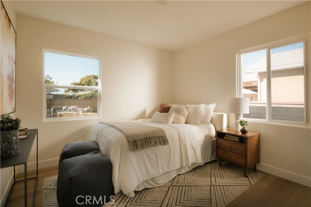 Welcome to this reimagined one of a kind 3BD/2BA corner-lot residence blending modern design with a refined Mediterranean influence. Bathed in natural light, the home showcases custom lighting details, oak carpentry, and striking vein-cut travertine featured throughout the bathrooms, kitchen, and front patio—creating a cohesive, top tier high-end finish. The expansive lot/yard offers multiple lawn and lounge areas, a substantial deck, and even a strong ADU potential for buyers considering future expansion, income, or multi-generational living. Beyond aesthetics, the home has been comprehensively updated —delivering a seamless combination of design, craftsmanship, and quality.