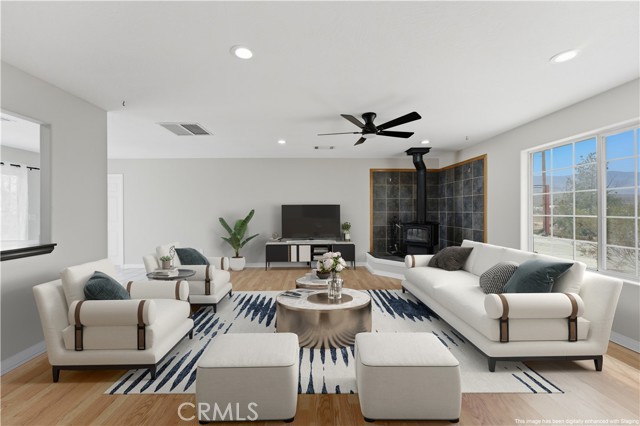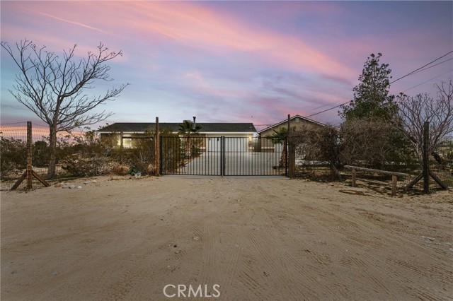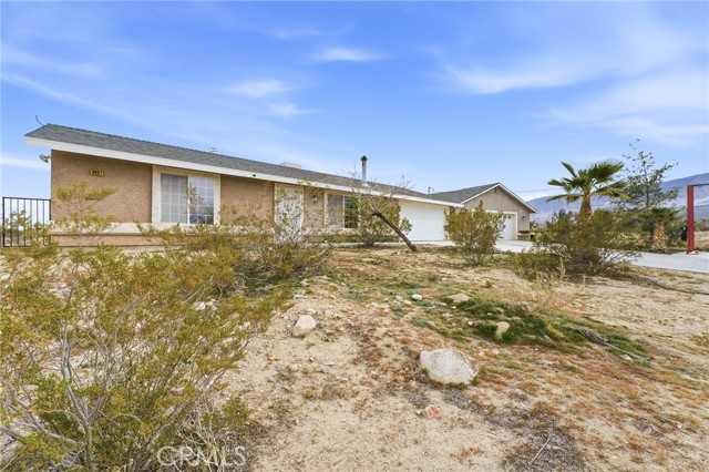 Move-in ready High Desert gem on 1.25 acres! This beautifully updated 2-bed/1-bath home 1,120 sqft ft of living space. Open floor plan with fireplace in the living room, fresh paint, stainless steel appliances including refrigerator, and a bright, welcoming interior. Enjoy an attached 2-car garage with direct access plus a detached oversized garage for extra storage or hobbies. Experience privacy and space while staying connected: ~25 miles to Big Bear, ~100 miles to Newport Beach & Los Angeles, ~62 miles to Redlands, and ~75 miles to Palm Springs. Perfect as a full-time home, weekend retreat, or investment opportunity — this property offers comfort, versatility, and true High Desert living.