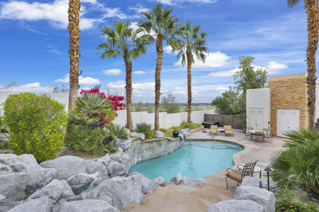 Opportunity knocks in The Quarry at La Quinta, home to one of Golf Digest's 'America's 100 Greatest Golf Courses', ranked #85 nationally and #13 Best in State in the 2025-26 Golf Digest rankings. The Championship Course, a Tom Fazio design and the only top-100 course in the Southern California desert, continues its long tradition of excellence -- including a 10-hole short course and 18-hole putting course. There have been no homes sold under $2,000,000 in The Quarry over the past five years, making this offering a rare entry point into a location with strong, sustained demand.Extraordinary Mediterranean living is reimagined here with light modern finishes, yet this floor plan still invites personalization and updating to make it your own.Walk through over-sized double front doors into an open, light-filled interior where multiple glass doors frame pristine mountain views -- an awe-inspiring backdrop for resort-style living. The great room, anchored by a light stacked-stone custom fireplace, flows seamlessly into the spacious family room and open kitchen.The kitchen highlights a large quartz island perfect for gathering and prep. Pantry storage and stainless-steel appliances including a professional range and refrigeratorOutdoor living is exceptional -- a lagoon-style pool with waterfall, and multiple patios providing effortless indoor-outdoor transitions ideal for relaxing or entertaining in the desert climate.This is more than a second home -- it's an investment in lifestyle, location, and long-term value in one of the most sought-after golf communities in Southern California.