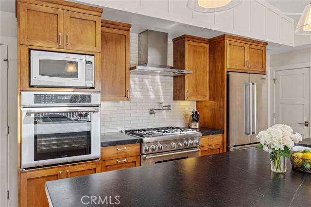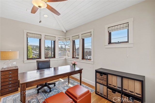 Welcome to this fully furnished custom contemporary craftsman in the sand section of north Hermosa Beach just steps to the beach, Valley Park, and Pier Avenue shops and restaurants. Designed by late Architect Stan Anderson, this beautiful home features 3 spacious bedrooms plus an office, 2 full baths, 2 half baths, beautiful solid wood floors throughout, and a designer’s touch in updated furnishings for the ultimate coastal lifestyle. Enter the home and proceed to the second level to enjoy the great room that is light and bright with vaulted ceilings, a beautiful fireplace in the living room, and custom trii-fold doors leading out to an expansive balcony perfect for relaxing and entertaining. The chef's kitchen is outfitted with luxury appliances, a large island with beautiful black soapstone countertops, custom cabinetry and a walk-in pantry. Off the living room is a small private office full of natural light. Also on this floor is the primary suite which provides ultimate privacy featuring a large walk-in closet, a wrap-around balcony, and primary bath with heated floors, stone counters, dual sinks, a soak tub, and a separate shower. Transition down the solid hardwood staircase to the entry level which presents a small living space with built-ins, a half bath, and two spacious bedrooms with a shared bathroom. The private back patio has a tranquil feel with string lights, a fire pit, and mature trees integrating the outdoor space for the ultimate California experience. The private back patio has a tranquil feel with string lights, a fire pit, and mature trees integrating the outdoor space for the ultimate California experience. The two-car garage has ample storage and option to add EV charging. There’s additional two-car parking in the driveway. Don't miss out on the opportunity to experience coastal living at its finest in this unique Hermosa Beach home! Owner pays for cleaning service once a month, gardener, water, gas, trash, electric and wifi / internet. (This property is also for sale.)