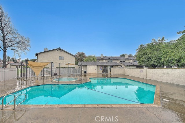 Welcome to this beautifully maintained 3-bedroom, 2.5-bath end-unit townhome located in the desirable Indian Knolls community of Colton. This end unit offers added privacy with only one adjoining neighbor and a convenient location near the community pool and spa. The thoughtfully designed floor plan features tile flooring throughout the entire downstairs level. A spacious dining area flows seamlessly into the family room, creating an open and functional living space ideal for everyday living and entertaining. The family room is filled with natural light from a large front-facing window and includes a cozy gas fireplace. The kitchen features granite countertops, white cabinetry, and ample storage and prep space. Upstairs, you’ll find all three bedrooms along with additional hallway storage cabinets, providing ample space for linens and household essentials. The primary suite offers vaulted ceilings, a large window that brings in natural light, and an attached bathroom with dual sinks. Two additional secondary bedrooms provide comfortable space and versatility. The upstairs hall bathroom includes a full-size tub and shower combination. Additional features include central heating and air conditioning for year-round comfort. The generously sized backyard patio is designed for low maintenance and includes sleek vinyl fencing. The patio provides direct access to the detached garage and an assigned parking space. Residents of Indian Knolls enjoy access to community amenities including a pool and spa. Conveniently located near shopping, dining, commuter routes, and just minutes from Loma Linda University and Loma Linda University Medical Center, this home offers comfort, functionality, and a prime location.