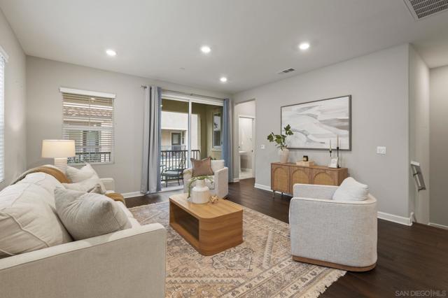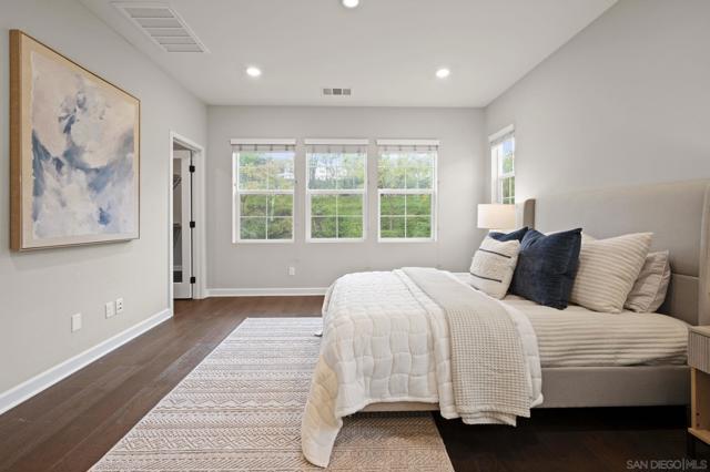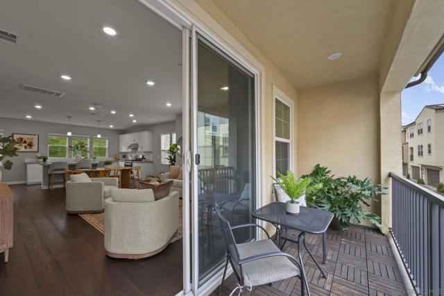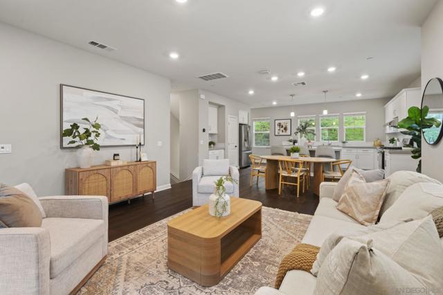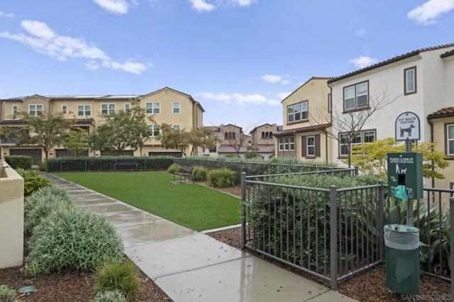 Beautiful 2021 built Corner Unit Townhome in the Sought-After Promenade at Pacific Village – No Mello Roos! Welcome to this wonderful three-level corner unit where modern design meets everyday comfort. Bathed in natural light from extra corner windows, this home feels bright, airy, and welcoming. With 9-foot ceilings and an open-concept living space, the heart of the home invites you to gather, relax, and entertain. The modern kitchen features quartz counters, a large island, a pantry closet, and ample counter space, making it as functional as it is stylish. Step out to your private balcony on the second level or enjoy morning coffee on your charming front patio — both perfect spots to savor Southern California’s sunshine. Thoughtful details are found throughout, including a bedroom and full bathroom on the entry level, ideal for guests or a home office, and a dedicated laundry room for convenience. Upstairs on the 3rd level, the primary suite offers a serene retreat with a walk-in closet and a beautifully finished bathroom. The Promenade at Pacific Village is a vibrant community featuring a sparkling pool, playground, BBQ and picnic areas, and several dog parks just steps away — creating the perfect blend of recreation and connection. With no Mello Roos, easy access to nearby shops, dining, and top-rated Poway Unified schools, this home offers the lifestyle you’ve been dreaming of — bright, effortless, and beautifully balanced. Come see why life at Pacific Village feels like home.
