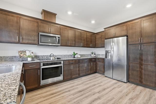 Gorgeous Single Family home built in 2022. 50k Plus in upgrades. Open-concept floor plan featuring spacious living and dining areas. Upgrades include wooden flooring, recessed lighting, Central AC, and large double pane windows offering natural light. Gourmet kitchen boasts granite counter tops, upgraded cabinetry, stainless steel appliances, and pantry. The spacious primary bedroom, filled with natural light, features a large walk-in closet and an en-suite bathroom with dual (his and hers) sinks and standing shower. Secondary bedrooms are ideal for kids and guests. Upstairs laundry room adds everyday convenience. 2 Car Attached garage with drive way. Low maintenance backyard for relaxation. Multiple guest parking spots available inside the community. Centrally located close to BART, I-880/I-580, Mission Blvd, CSU East Bay, shopping, dining, parks, and major employers. First-time buyers and investors, don't miss this incredible opportunity to own a modern, low-maintenance, move-in ready home.