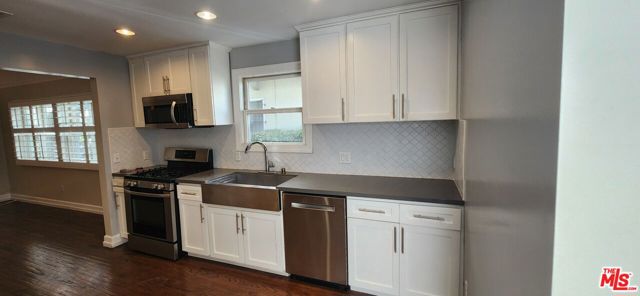 Experience the perfect blend of 1920s Mediterranean charm and sophisticated modern living in the heart of the Miracle Mile. This expansive, approx. 2,000 sq. ft. residence features 3 bedrooms plus a versatile family room, all meticulously renovated with high-end finishes. The main level welcomes you with a huge living room bathed in natural light, leading to a gourmet kitchen with quartz countertops and a charming breakfast nook. Sun-drenched interiors boast hardwood floors throughout, recessed lighting, and elegant plantation shutters. Enjoy your morning coffee on the private front balcony or retreat to the peaceful rear deck off the primary suite. Modern essentials include Central AC/Heat, a dedicated in-unit laundry room, and two-car parking. Ideally located just blocks from the best dining, museums, and culture L.A. has to offer.