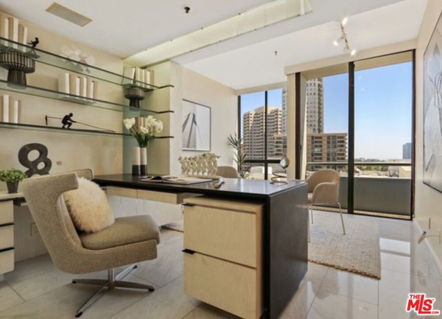 Perched on the coveted Wilshire Corridor high on the 10th floor, this refined 3-bedroom, 3.5-bath residence offers an exceptional level of sophistication, scale, and sweeping south-facing city and treetop views. Bathed in natural light, the residence captures both southern and eastern exposures, creating luminous interiors and tranquil private retreats. A grand open-concept living and entertaining space is anchored by elegant marble flooring and expansive windows that frame panoramic skyline vistas. An impressive, oversized bar serves as a dramatic focal pointperfect for hosting intimate gatherings or elegant evenings at home. The gourmet kitchen is thoughtfully designed to flow seamlessly into the main living areas, yet offers the flexibility to be closed off for privacy when desired, ideal for formal entertaining. A conveniently located laundry unit is discreetly positioned within the kitchen area for everyday ease. Each bedroom is generously proportioned and ensuite, offering comfort and privacy. The primary suite provides a serene retreat elevated above the city with a spacious bathroom and generous-sized walk-in-closet. Residents enjoy the full-service amenities of one of the Corridor's premier luxury buildings, including 24-hour security, valet service, doorman, a state-of-the-art fitness center, resort-style pool, and a conference room. A rare opportunity to experience elevated, full-service living in one of Los Angeles' most prestigious addresses.