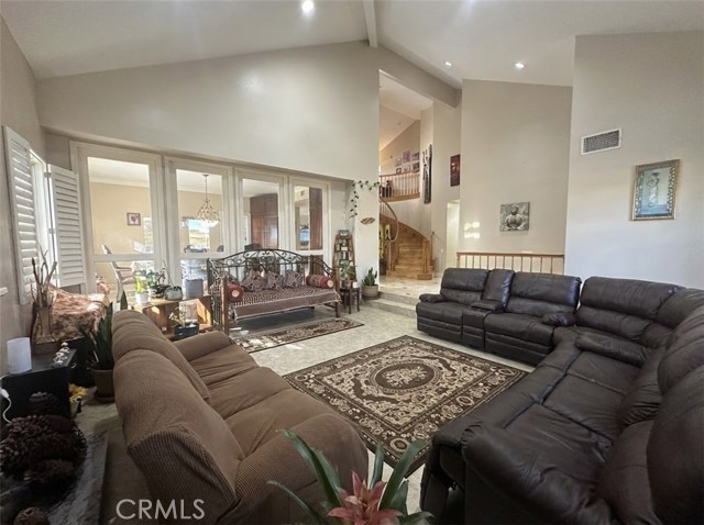 Nestled in the beautiful Butter Creek II Estates, this east-facing corner home—featuring added privacy with only one adjacent neighbor—offers scenic views and an inviting, open layout. The spacious 3-car garage includes extensive custom built-in cabinetry for exceptional storage. Inside, enjoy a bright living room with soaring ceilings and a separate formal dining area with great natural light and ample ventilation. The recently upgraded kitchen is the heart of the home, complete with a custom built-in bench seating area and newer appliances. Bathrooms feature newer commodes with bidet upgrades. The family room is both comfortable and dramatic with high ceilings and tranquil backyard views. A downstairs bedroom with a separate entry from the garage/backyard offers flexible use as a private guest suite or home office. An additional large room addition on the main level provides even more versatility—ideal as a potential 5th bedroom, media room, gym, or bonus space. Upstairs, the expansive primary suite is complemented by an oversized walk-in closet. Two additional bedrooms share a convenient Jack-and-Jill bathroom, completing the upper level. Step outside to an entertainer’s backyard with ample space for gatherings and potential room for a future pool (buyer to verify). Mature lime, lemon, avocado, guava, peach, and banana trees, along with an impressive rose garden featuring varieties, create a true gardener’s retreat. Enjoy beautiful sunrises and sunsets in this serene home.