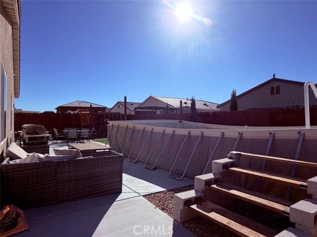 Welcome to this beautifully upgraded home located in the desirable North Adelanto area of Adelanto! This spacious 3-bedroom, 2-bathroom residence offers comfort, style, and versatility for today’s modern lifestyle. Step inside to discover generously sized rooms throughout, including a private primary suite featuring its own bathroom and a large walk-in closet. The home also boasts a versatile bonus room—perfect for a family room, home office, or even a potential 4th bedroom. The upgraded kitchen is a true highlight, featuring elegant granite countertops, stainless steel appliances, and not one, but two pantries with custom glass doors for added style and storage. Enjoy the seamless flow of large tile flooring throughout the home, complemented by ceiling fans in every room for year-round comfort. Relax and entertain in the inviting living area, complete with a custom-built TV/entertainment wall and an electronic ambiance fireplace—perfect for cozy evenings. Situated on a desirable corner lot, this property offers a spacious backyard with extensive concrete work on both the rear and sides—ideal for low maintenance and outdoor gatherings. Cool off during warm days in the above-ground pool, making this home perfect for entertaining family and friends. This move-in ready home truly has it all—space, upgrades, and flexibility. Don’t miss your opportunity to own this exceptional property!