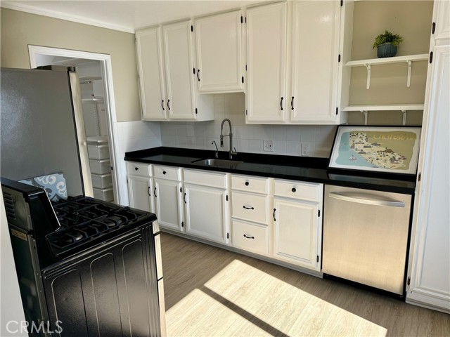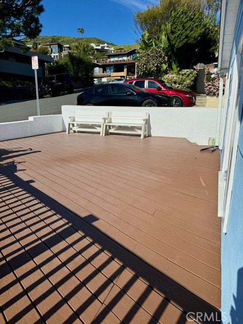 Location and charm come together in this rare owner's unit, offering a beautifully remodeled coastal retreat. It's almost impossible to list all of the amenities and benefits of this home but let's start with the fact that it's located in an incredible neighborhood of North Laguna! This approximately 800 sq.ft. home blends modern upgrades with effortless coastal living. Peek-a-boo ocean views from the bedroom, kitchen and outdoor front patio creates a light and airy atmosphere throughout. The thoughtfully redesigned interior features luxury vinyl flooring, Kenmore Elite appliances, complemented by split air conditioning and heating units in both the living room and bedroom for year around comfort. The kitchen and living spaces flow seamlessly, making the home feel open, functional, and inviting. The spa inspired bathroom showcases a Carrera marble counter and integrated sink, a tub within the shower, a mounted, illuminated mirror with defogger, a beautiful mirrored medicine/utility cabinet and plenty of cupboard space delivering both style and practicality. Additional upgrades include a reverse osmosis water system and tankless water heater for modern efficiency. Storage is plentiful with custom Elfa lit closet shelving & drawers, while the convenience of a full size stackable washer/dryer located inside the home completes this exceptional offering. Step outside to a lovely front yard designed for both relaxation & entertaining, featuring a luxury composite deck, electric BBQ area, remote controlled outdoor lighting & a charming Meyer lemon tree & loganberry bush adding both beauty and function to the outdoor space. Fully upgraded & move-in ready, this unit presents a rare opportunity to enjoy refined finishes, smart functionality, and a touch of ocean view charm in a beautifully compact coastal retreat. Located within minutes of downtown Laguna Beach, Shaw's & Fisherman's Cove and Crescent Beach, the Art Festivals, restaurants and shopping.