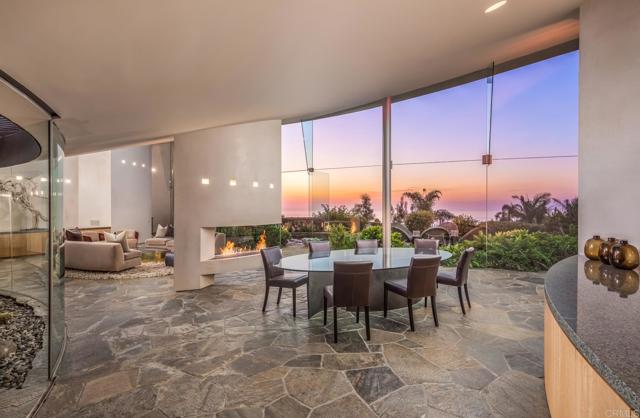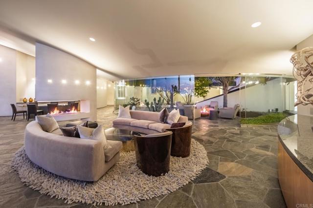 Available March 5! Superior Bold and Dynamic Contemporary Masterpiece. This unique distinctive free form structure rests upon the lush hillside within La Jolla framed byCoastal Vistas. Tucked away in a quiet Cul De Sac. Expansive single level approx 4,900 SF home, 3 bedroom, 3.5 baths with office, artist/loft/home theatre. 20 Foot floor to ceiling towering glass walls are both artistic and functional and act as a framing device for the unique structure itself. Fully enclosed private courtyard with protected glass walls, seamless indoor and outdoor living spaces open to expansive Coastal Vistas. Every custom detail is part of the whole 'LIVING IN ART" experience. Open Living/Great Room/Dining Room accented by crushed glass free form fire feature. MainSuite with disappearing doors and wall panels. Spiral staircase leads to artist retreat/theatre. Custom inset cabinets blend seamlessly into walls throughout. Gallery custom Kitchen with rough stone flooring and granite countertops. Backyard is completed by babbling water brook, tropical koi pond and natural canopy trees. Fully Furnished Luxury Long Term Rental. This barrier free design captures coastal views, downtown La Jolla, and theGolf Course. Stylish, Ultra Contemporary, Luxury Private Estate that connects to its natural surroundings.