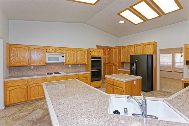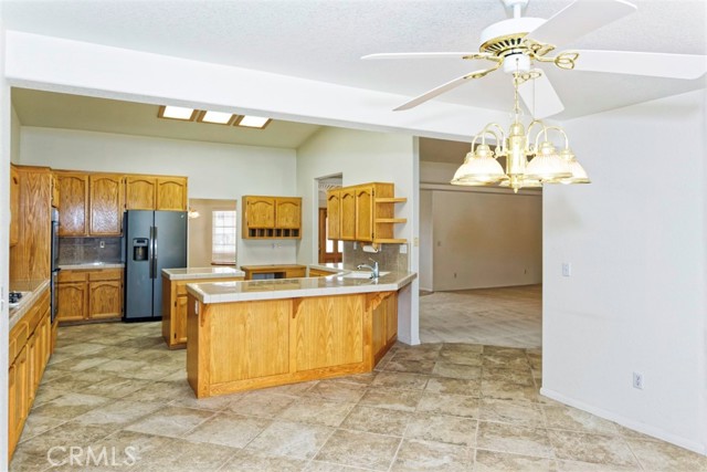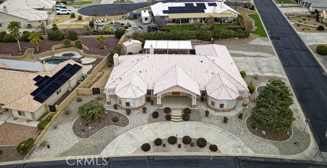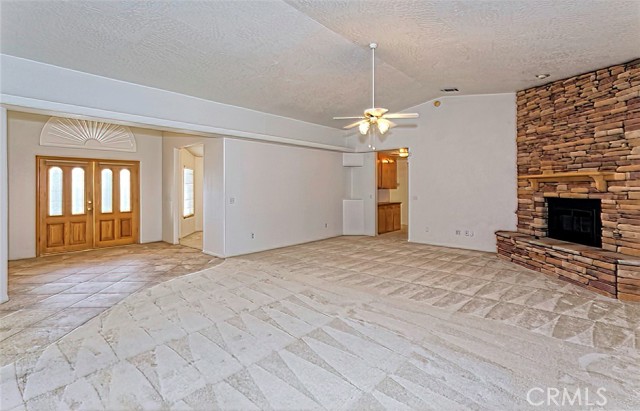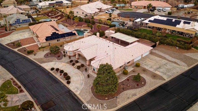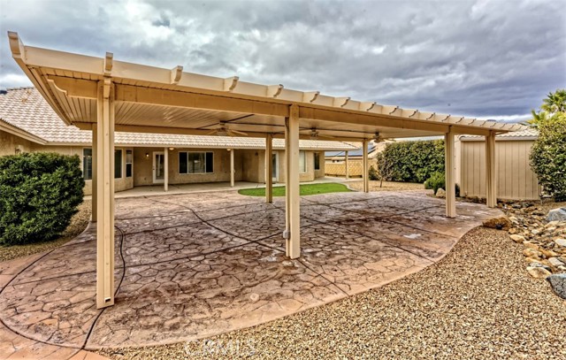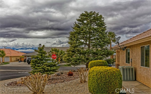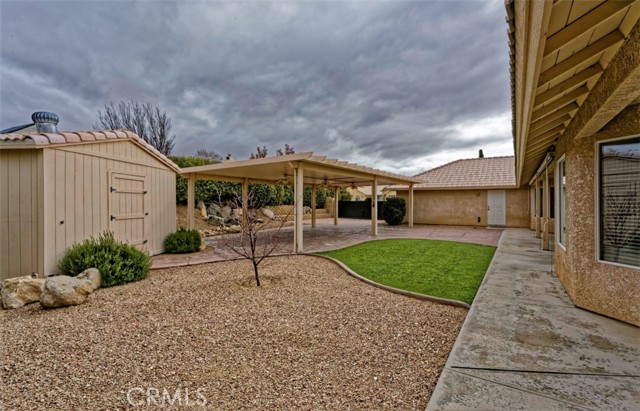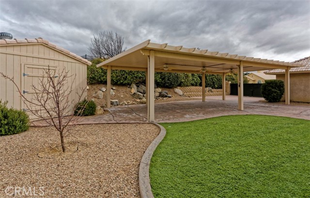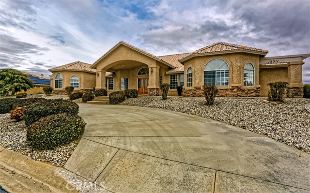 Spacious and thoughtfully designed, this 3,640 sq. ft. split floor plan home offers 5 bedrooms and 3 bathrooms on a generous 20,000 sq. ft. corner lot with beautiful southwest-facing views and exceptional curb appeal. A grand entrance welcomes you with a circular driveway and extensive concrete work, creating both convenience and an impressive first impression. The side-entry 4-car finished garage adds architectural appeal and includes built-in storage cabinets, garage door openers, and dedicated counter space ideal for workshop or hobby use. This home has been gently lived in and reflects pride of ownership throughout, showing no hard wear. Tile and carpeted flooring provide a balance of comfort and durability, while tile countertops in the kitchen, bathrooms, and laundry room offer style and easy maintenance. The expansive kitchen features a large center island, abundant cabinetry, and extensive pantry storage with pull-out shelving for easy access. It opens seamlessly to the great room, making it perfect for entertaining and everyday living. A cozy dining nook provides casual dining space, while the formal dining room is ideal for special gatherings. A separate office offers privacy and flexibility for remote work or study. The private primary suite serves as a true retreat with its own fireplace and direct access to the large covered patio—perfect for enjoying cool summer evenings. The primary bath includes dual vanities, a spacious accessible closet, private water closet, soaking tub, and an oversized double step-in shower. In addition to two generously sized secondary bedrooms with exterior access, the home includes two more comfortable secondary bedrooms, offering flexibility for family, guests, or additional workspace. Additional highlights include an indoor laundry room with storage, counter space, tile countertops, and a wet sink, along with abundant storage throughout. An RV gate provides secured behind-the-fence parking with electrical hookups. The backyard is thoughtfully designed for relaxation and entertaining, featuring a covered open-air cabana with solid flooring, a tranquil waterfall feature, a matching storage shed, and high privacy walls enhanced by mature foliage. Offered at a price aligned with current FHA loan limits for San Bernardino County, this home presents exceptional space, functionality, and value.