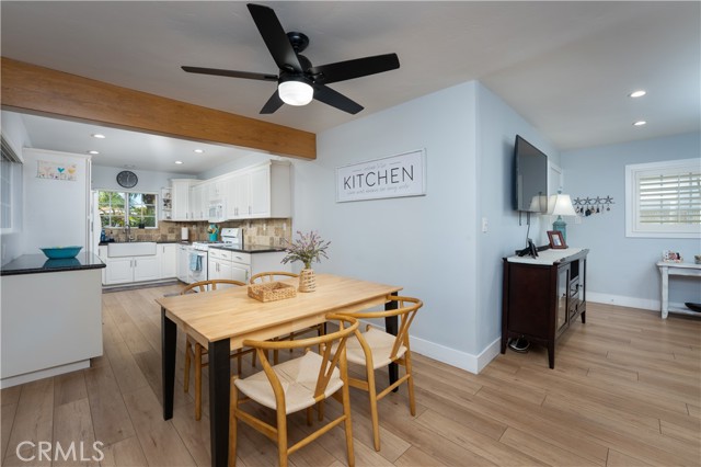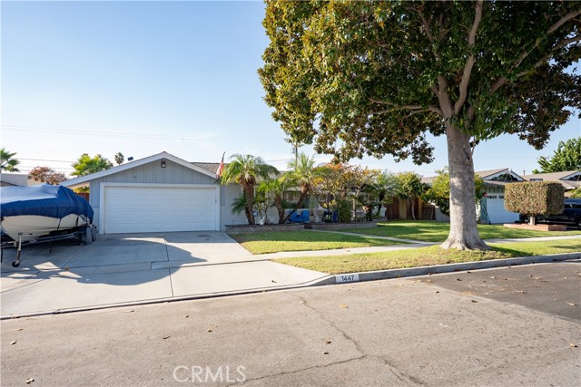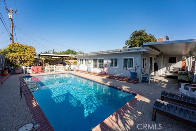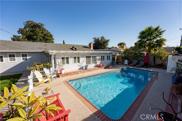 Welcome to this light and airy Anaheim single story home offering a relaxed coastal-inspired feel and an ideal open floorplan. The home features 3 bedrooms, 2 newly remodeled bathrooms, and 1,962 square feet of well-maintained living space on a generous 7,875 square foot lot. Wide newer baseboards and light LVP wood like flooring flow throughout, enhancing the bright and welcoming interior. The open kitchen is appointed with granite countertops, a porcelain farmhouse sink, abundant cabinetry, and direct views into the dining room & family room. The family room showcases custom built-in cabinets, and shelving with shiplap accents and overlooks the backyard oasis. A separate living room includes a gas-starter fireplace, while the dining room offers sightlines to both the living and family rooms, ideal for entertaining. The primary bedroom features a private, recently remodeled bathroom with a step in shower. Dual-pane windows, central air conditioning, and a soft water system add comfort and efficiency. Step outside to enjoy a sparkling pool, relaxing covered patio area, fruit trees, and fragrant plumerias—perfect for outdoor living. Additional highlights include an attached two-car garage with direct access, laundry area in the garage, and extended driveway space with room for a boat or small trailer. Conveniently located near parks, schools, shopping, and 1 mile to Disneyland, this move-in-ready home offers an exceptional Anaheim lifestyle. Built in 1957. Well maintained and truly turnkey. Make sure to click on the 360 logo to view the property video