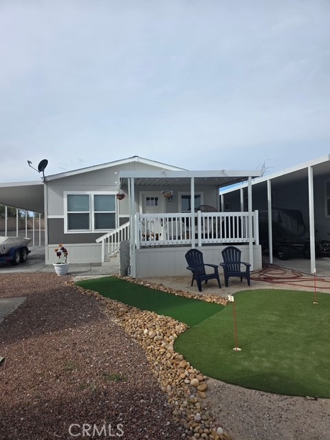 Near new home in the beautiful River Palms Resort located on the pristine Colorado River. 3 Spacious, open plan with lots of natural light throughout. Master suite with its own en-suite bath and walk-in closet. Separate inside laundry room with access door to outside. Full length covered carport, large covered rear deck that overlooks yard with your own mini putting green. Corner lot and near lots of extra parking spaces for guests! Community amenities include small private community beach, launch ramp, dock, basketball/tennis courts, pools, spa, outdoor BBQ areas, fitness center and more. Enjoy all the community events Palms River has to offer. Enjoy off-road trails, nearby AVI Resort, Laughlin night life and more! Call your agent today to miss out on this opportunity for the best priced 3 bedroom in the community.