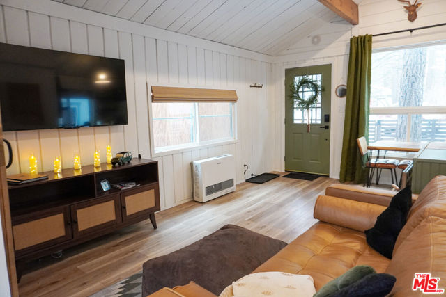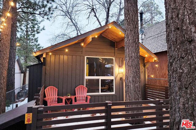 Welcome to this charming, fully furnished, and cozy little cabin! It is a successful vacation rental that has proven to be the perfect retreat for couples or solo individuals year-round. Everyone loves the idea of staying in a "tiny" home! It has received the "Guest Favorite" badge, is in the top 10% of vacation homes in the area, and has an average 5-star rating. This cabin is also surrounded by tall pine trees and tucked away in a quiet neighborhood that is less than 10 minutes away from Big Bear Lake. It is newly remodeled and upgraded with an open-concept design, 1 bed, 1 bath, vaulted ceiling with exposed beams. There is an outdoor hot tub, propane grill, seating areas, front and back decks, washer and dryer, and outdoor lighting. Both the front yard and backyard are fully enclosed. There is a shed in the backyard for additional storage. A large water heater, wall heater, and ceiling fan were recently installed. This little cabin truly stands out from the rest and is loved by all who stay here. Earn income from day 1 or enjoy as your own home or personal getaway!
