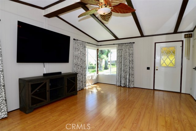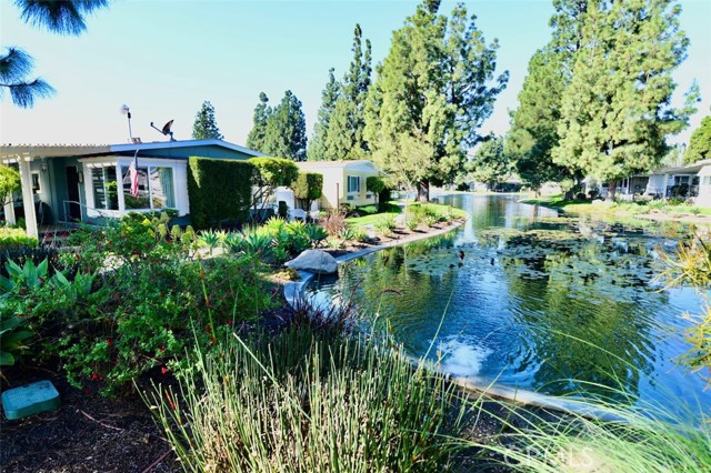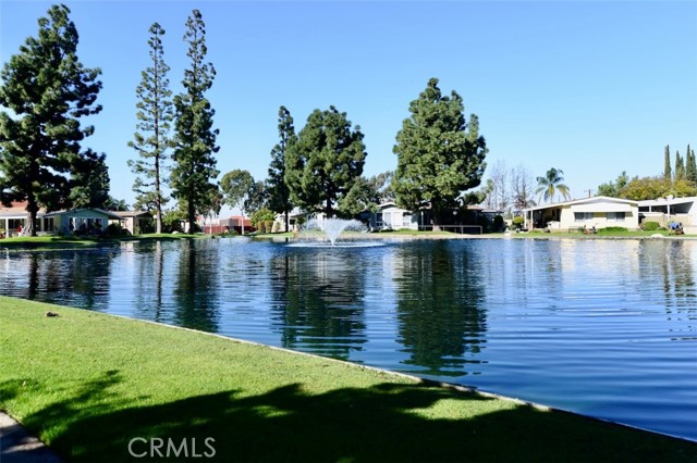 Welcome to the desirable Senior Park Community (55+), offering a peaceful, well-maintained environment with a spacious clubhouse overlooking a beautiful lake entrance and lush greenbelt. This freshly updated 2-bedroom, 2-bathroom home features both new interior and exterior paint and is ideally situated right by the lake, just a short walk from the sparkling community pool and spa. A new roof was installed less than three years ago, and the kitchen was upgraded at the same time with updated countertops and appliances, including an electric stove/range. Additional highlights include indoor laundry with a newer washer and dryer, and an A/C and heating system approximately 4–5 years old for year-round comfort. The bright living room showcases gorgeous lake views, while a sliding glass door in the dining area opens to a large covered patio—perfect for relaxing or entertaining guests. The spacious primary bedroom features elegant new drapes, a large mirrored-door closet, and direct access to an oversized bathroom. Ceiling fans with remote controls are installed in both bedrooms and the main living areas, and laminate flooring runs throughout the home for a clean, modern look. This move-in-ready residence combines comfort, convenience, and scenic surroundings—an exceptional opportunity you won’t want to miss.