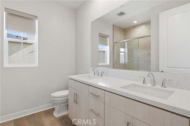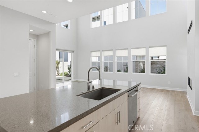 Welcome to one of the most impressive homes in the prestigious Meadows community by Toll Brothers. This four-bedroom, three-bathroom showpiece offers a dramatic open-concept design, soaring ceilings, curated designer upgrades, a highly desirable downstairs bedroom, and FREE solar power—delivering style, efficiency, and functionality in one stunning package. Step through the charming front porch into a dramatic two-story foyer that flows seamlessly into the expansive great room—highlighted by towering ceilings, a wall of windows that flood the space with natural light, a sleek fireplace, and sliding glass doors opening to the beautifully landscaped backyard. The gourmet kitchen overlooks the dining and great room areas, creating the perfect setting for everyday living and entertaining. It features a spacious center island with breakfast bar seating, abundant cabinetry for ample storage, premium stainless steel appliances—including a six-burner gas cooktop and built-in refrigerator—and generous counter space for effortless hosting. Upstairs, the luxurious primary suite serves as a private retreat, complete with an expansive walk-in closet and a spa-inspired bathroom designed for relaxation. Two additional bedrooms share a well-appointed hallway bath with dual sinks, offering comfort and convenience for family or guests. The 2 car garage has epoxy flooring, built-in storage cabinets and an EV Charger outlet. Enjoy resort-style amenities including a private clubhouse, two pools, two spas, cabanas, a cozy lounge with fireplace, outdoor BBQ areas, multiple parks, sports fields, and courts for basketball, pickleball, and volleyball. Miles of biking, hiking, and walking trails connect directly to the Serrano Creek Regional Trail system. All this with convenient freeway access and just a short stroll to 24 Hour Fitness, Starbucks, Target, and a wide variety of popular dining option. This is one you won’t want to miss.