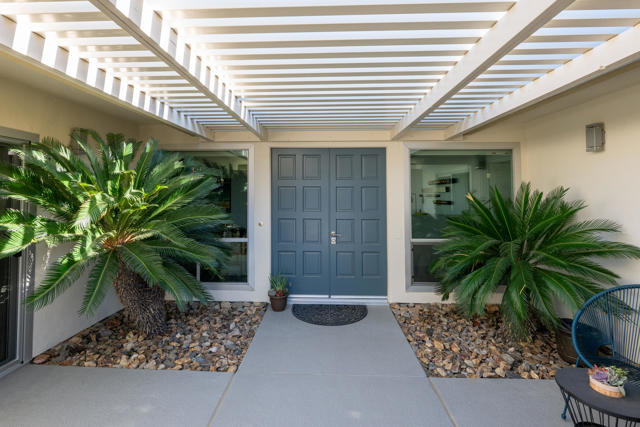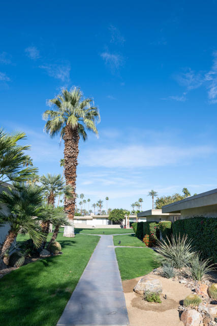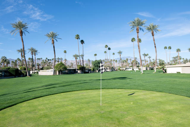 This special property is the only 4 Bedroom, 3 Bath home currently on the market in Casa Dorado at Indian Wells. It has been thoughtfully updated with contemporary design elements, and double-pane windows installed throughout the home. The kitchen and bathrooms have been remodeled with new cabinetry, quartz counter tops, appliances, fixtures, thick-glass enclosed showers, and porcelain tile flooring. The kitchen is open to the dining area with adjacent bar alcove that has a combination wine cooler/beverage refrigerator. The primary bedroom has an oversized walk-in closet with custom-designed California cabinetry and hanging space. An enclosed side-courtyard has been uniquely designed with two storage spaces that could be used as a golf cart garage and/or workroom. The landscaping surrounding the property has been professionally designed with low maintenance desertscape plantings.Casa Dorado is a sprawling, low density community with 116 condominiums on 26 acres. The grounds consist of 4 small lakes, 4 short par-3 golf holes that meander throughout the community, 6 pools, 4 spas, 2 tennis courts, and a clubhouse for social activities. The architectural character of the single-story structures is classic mid-century styling. The flat roof-lines and floor to ceiling pictures windows allow for expansive greenbelts, lake, and mountain views.