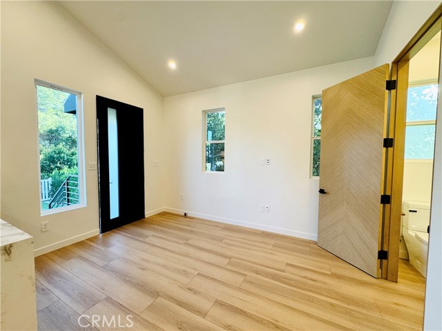 Stunning BRAND NEW 2 bedroom, 1 and 1/2 bath home on Knollwood Golf course available FOR LEASE! Be the first to live in this top of the line luxury property with it's own driveway, fully gated front yard with turf, and dedicated back yard area. This endearing free standing house is endearing with an open concept kitchen living room combination, 10 ft vaulted beamed ceilings, recessed lights, new floors, central AC/heat, ceiling fans, ample parking, and is situated on a quiet street in Granada Hills. The bright kitchen offers tons of cabinet space and counters with a refrigerator, stove, microwave, dishwasher, and eat-in breakfast bar. Guests can use the half bath off of the living area and kitchen. The primary bedroom features a ceiling fan, mirrored closet, plus a bathroom en-suite with a large walk in shower and light up vanity. Second bedroom would be perfect for an office, gym, or guest space with a mirror closet and sliding glass door to the back yard. New washer and dryer are included. This additional dwelling unit also features awnings in the front and back, and the private backyard has a view of the golf course. Gardener, water, and Ring camera are included. Utilities not included are power, wifi, sewer, and trash. Dedicated driveway onsite and street parking. Property is conveniently located near highly desired schools, restaurants, and shopping. Call or text to schedule a viewing today!