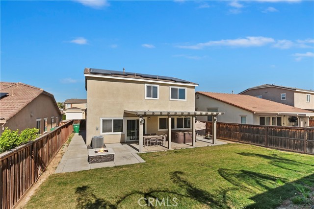 Welcome to this beautifully maintained 4-bedroom, 3-bath residence located on a quiet cul-de-sac in the highly sought-after Tournament Hills community. Built in 2014 and offering approximately 1,969 sq ft, this two-story home blends modern comfort with thoughtful design. The open-concept layout is filled with natural light and ideal for both everyday living and entertaining. The kitchen features granite countertops, rich dark cabinetry, stainless steel appliances, and generous prep space overlooking the main living area. Step outside to a private backyard retreat complete with a covered patio, built-in fire pit, manicured lawn, and scenic hillside backdrop — perfect for relaxing evenings or hosting gatherings. Enjoy energy efficiency and long-term savings with a fully paid solar system. Additional highlights include an attached two-car garage and access to Tournament Hills’ lake, parks, and walking trails. Conveniently located near golf courses, shopping, dining, and easy access to the 10 and 60 freeways. A rare opportunity to own a move-in-ready home with premium outdoor living in one of Beaumont’s most desirable communities.