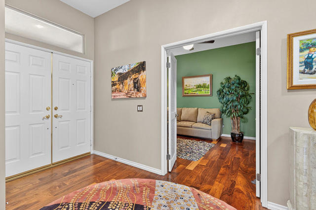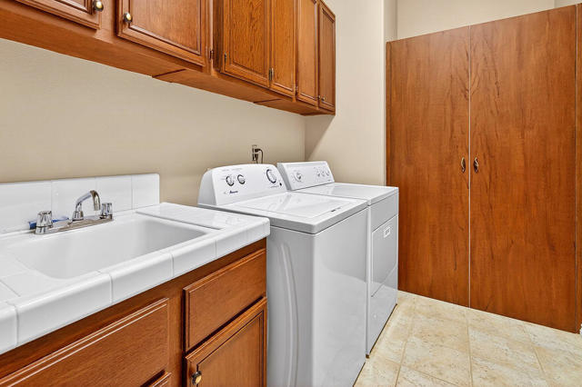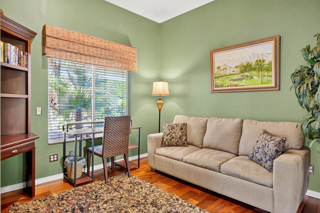 Set within the gates of prestigious Rancho Mirage Country Club, this refined single-family residence blends timeless elegance with thoughtful design, offering a seamless open floor plan ideal for both relaxed living and sophisticated entertaining. A grand double-door entry introduces light-filled interiors where expansive living and dining spaces are anchored by a striking double-sided fireplace shared with the tranquil primary suite -- creating warmth, ambiance, and architectural interest.The kitchen is designed for both function and style, featuring a center island, pantry, abundant cabinetry, and generous counter space that effortlessly supports everyday living or gatherings. A well-appointed laundry room with sink and built-in storage enhances convenience.The flexible layout includes two spacious en-suite bedrooms plus a third bedroom with double-door entry, currently styled as an office. The primary retreat offers a spa-inspired bath with soaking tub and separate shower, while additional baths provide a walk-in shower and a shower-over-tub configuration to accommodate guests with ease.Additional highlights include a double garage with dedicated golf cart space, extensive storage cupboards, and a cohesive, polished aesthetic throughout -- reflecting pride of ownership and understated luxury.Outdoor living completes the experience, where a private pool and spa set the stage for relaxation amid breathtaking mountain and greenbelt views. An expansive patio, built-in BBQ, and retractable awning create the ultimate entertainer's setting -- perfectly positioned to capture the beauty and serenity of the surrounding landscape. Ideally positioned in Rancho Mirage Country Club, this residence enjoys a premier location at the heart of Rancho Mirage luxury living. Just moments away is renowned Eisenhower Health, while the vibrant The River at Rancho Mirage delivers upscale dining, shopping, and entertainment along Bob Hope Drive. Nearby, the iconic Omni Rancho Las Palmas Resort & Spa enhances the resort-style atmosphere of the Bob Hope Dr corridor. Together, the setting offers an exceptional blend of convenience, prestige, and desert sophistication -- perfectly suited to those seeking refined, luxury living.