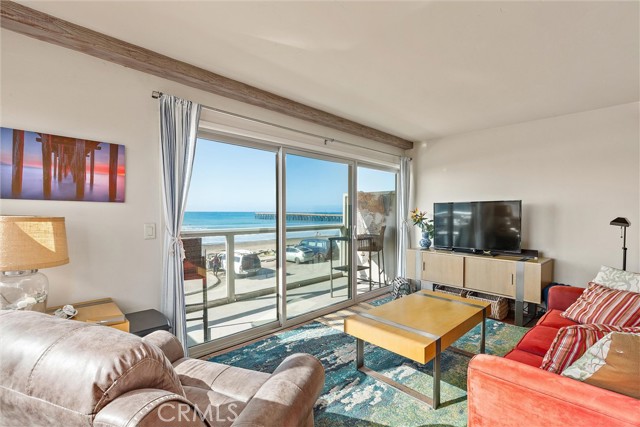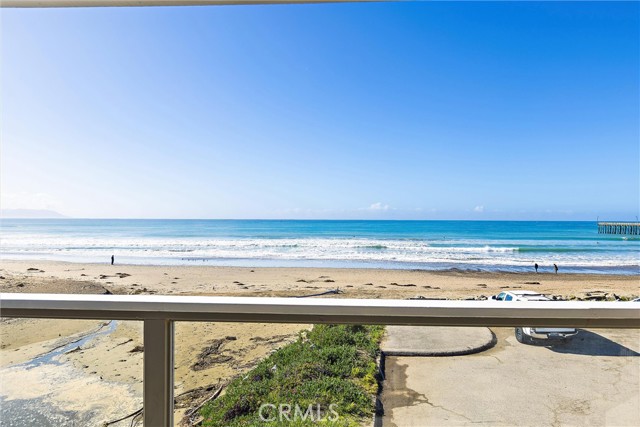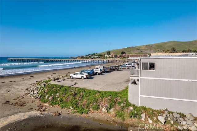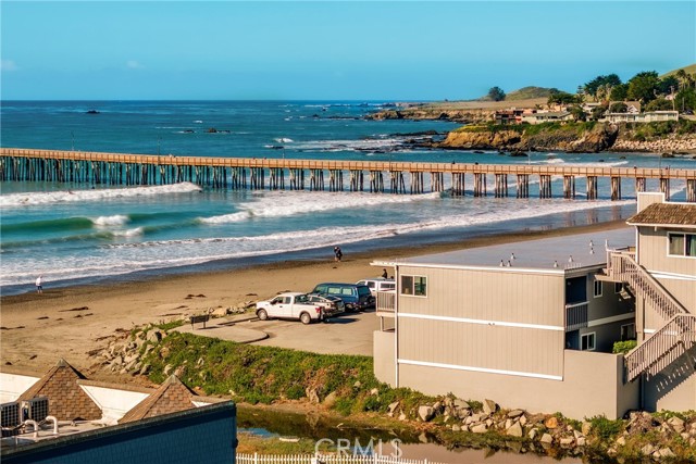Breathtaking panoramic whitewater views of the entire coastline from Morro Rock to the Cayucos pier from this end unit condo. Watch the surfers and shore birds or take a walk in the sand searching for sea glass or other treasures. Two bedrooms, two bathrooms, heated outdoor shower, tile floors, ceiling fans, indoor laundry, wet bar with wine refrigerator add to beach living. Upstairs you will find an open floorplan with deck and an updated kitchen. There is a current vacation rental license which adds to the value of this property. Located in downtown Cayucos and just steps away from shopping and restaurants. Furniture and furnishings are available, and it is ready and waiting for you to enjoy for the upcoming summer.