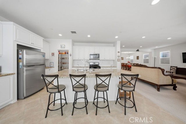 Nestled within the highly sought-after New Haven Master Plan Community of Ontario Ranch, this beautifully maintained home offers the perfect blend of comfort, style, and functionality. Featuring four spacious bedrooms and three full bathrooms, including a convenient main-level bedroom and bathroom, this bright and airy residence is filled with natural light and enhanced by recessed lighting throughout. The open-concept layout showcases a large kitchen with custom cabinetry, subway tile backsplash, and a walk-in pantry, making it ideal for both everyday living and entertaining. New carpet throughout adds a fresh, modern touch, while the thoughtfully designed floor plan flows seamlessly from room to room. Upstairs, the expansive primary suite serves as a true retreat, complete with a luxurious en-suite bathroom featuring dual sinks, a separate soaking tub and shower, and a generous walk-in closet. Step outside to enjoy a finished backyard with a covered patio and ceiling fan, perfect for relaxing or hosting gatherings. Additional highlights include an epoxy-coated garage floor and well-maintained finishes throughout. Residents of New Haven enjoy resort-style amenities including five sparkling pools, multiple parks, a splash pad, dog park (Paws Park), pickleball and basketball courts, four clubhouses, fire pits, outdoor BBQ areas, and outdoor fitness spaces. Conveniently located near Costco, 99 Ranch Market, Stater Bros, Sprouts, shopping, dining, and major freeways, this home offers exceptional lifestyle and accessibility. This is Ontario Ranch living at its best—comfort, community, and convenience all in one.