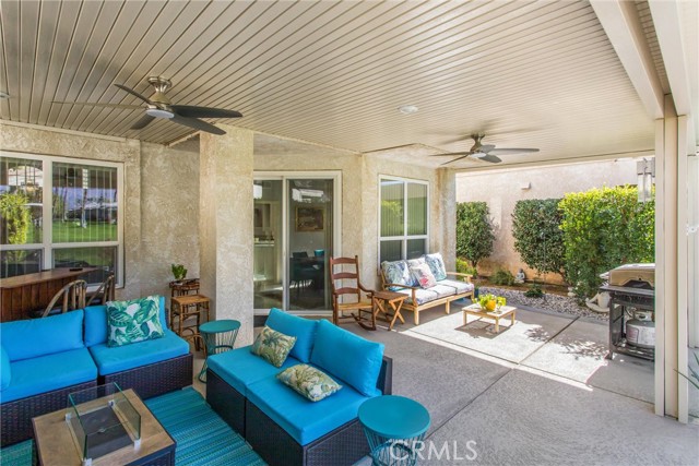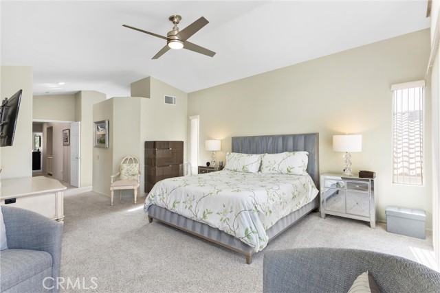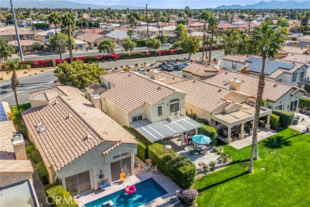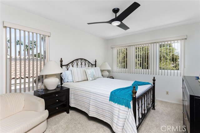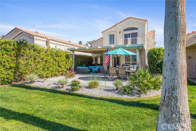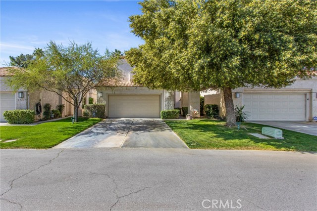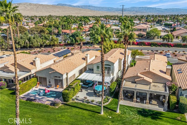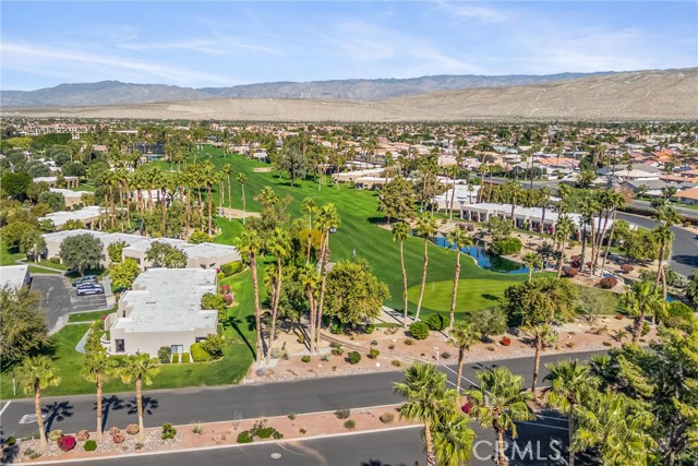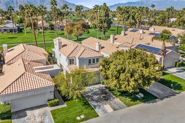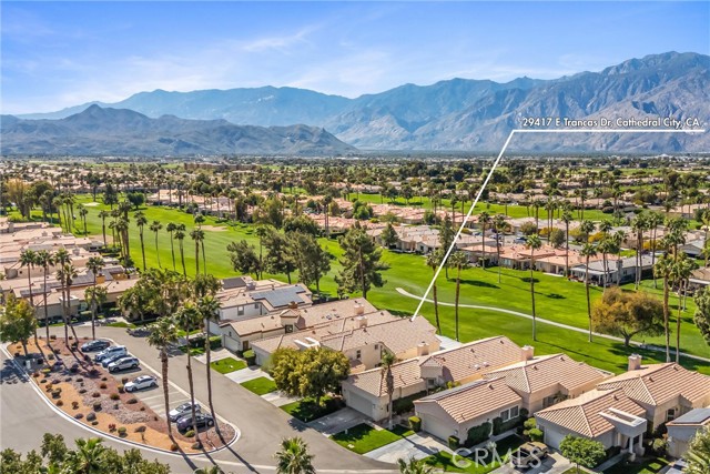 Located in the gated community of Desert Princess Country Club, this spacious 2,117 sq. ft. villa offers 3 bedrooms and 3.5 bathrooms and the added advantage of a land lease extended through 2069, providing long-term stability and peace of mind. The open-concept layout features soaring cathedral ceilings and abundant natural light through dual-pane windows. Generous living spaces flow seamlessly to a private Cool Deck patio with golf course and mountain views — ideal for indoor-outdoor desert living. Recent upgrades include a new HVAC system, new hot water system, and a whole-home EcoWater system for enhanced comfort and efficiency. All appliances are included, along with three mounted televisions, creating a convenient turnkey opportunity. HOA amenities include exterior maintenance, landscaping, irrigation, and Spectrum cable.