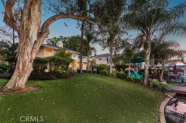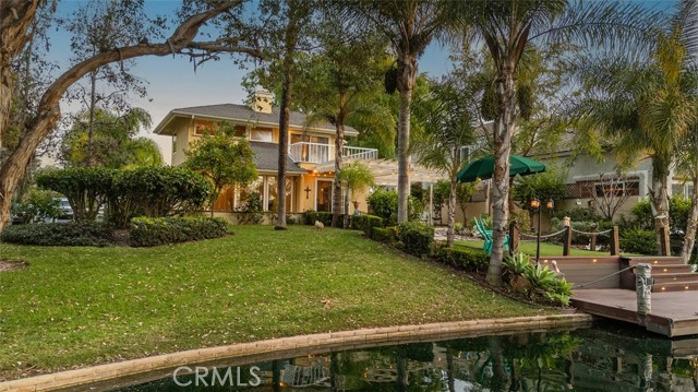 The Largest Waterfront Lot in Lake Forest, a Setting that Simply Cannot be Replicated. Positioned along the widest stretch of shoreline in Hidden Lakes, the residence sits beyond an expansive lawn and mature trees, creating a rare sense of depth between the home and the water. The scale of the parcel allows the lake to feel panoramic rather than immediate, private, quiet, and open in a way rarely experienced on waterfront properties. Inside, broad windows frame uninterrupted views across the water, drawing natural light deep into the home throughout the day. The layout lives comfortably toward the lake, allowing daily life to unfold around reflections, greenery, and sky. The interior has been thoughtfully updated while remaining warm and livable. Two bedrooms are located on the main level for flexibility and accessibility, while the kitchen has been refreshed to open naturally toward the living spaces and views beyond. Upstairs, the primary suite serves as a quiet retreat, featuring a spacious bedroom, private balcony overlooking the lake, and a refined en suite bath highlighted by a custom walk-in shower. Outdoors, the grounds read more like a private garden than a backyard, with a dock along the shoreline, shaded pergola seating, fire pit lounge, and multiple areas to gather or retreat. The distance across the water preserves calm sightlines and reinforces the sense of space that defines the property. Practicality matches the setting with a full three car garage and separate RV parking, offering flexibility rarely available on lakefront homes and further emphasizing the scale of the lot. More than a waterfront residence, this is a true shoreline estate defined by land, proportion, and permanence in a way that can no longer be recreated within Lake Forest.