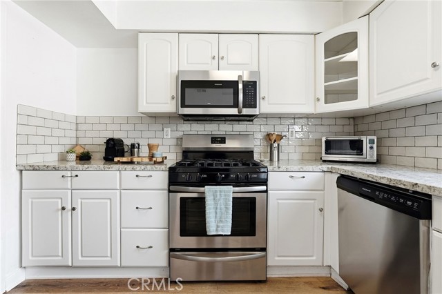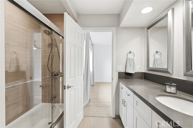 Welcome to this beautifully updated townhome in the desirable Devonshire Village community. This move-in ready townhome features updated luxury flooring on the second level and two spacious primary suites - each with its own private en-suite bathroom. One suite features a large, attached walk-in closet, custom vanity, and deep soaking tub, while the other offers pleasant tree views, large walk-in shower, and sleek quartz vanity with ample storage and counter space. Located in the interior of the complex, this home offers a peaceful environment away from street noise. The main level features a spacious living room, cozy fireplace, and wet bar, creating an inviting space for entertaining. The pristine kitchen includes granite countertops, stainless steel appliances, and ample cabinetry. Enjoy year-round California living in your private patio, perfect for outdoor dining or a BBQ setup. Additional conveniences include a 2-car garage with storage, plus in-garage laundry. Devonshire Village offers resort-like amenities, including two large pools and spas, lush landscaping, and well-maintained walkways. HOA covers water, internet, and cable. Guest parking available throughout complex (by permit). This home is located near the award-winning Granada Hills Charter High School, Granada Village shopping, restaurants, grocery stores, and the popular weekly “Grubfest” food truck event. Move-in ready and ideally located—this home offers comfort, convenience, and exceptional community amenities.
