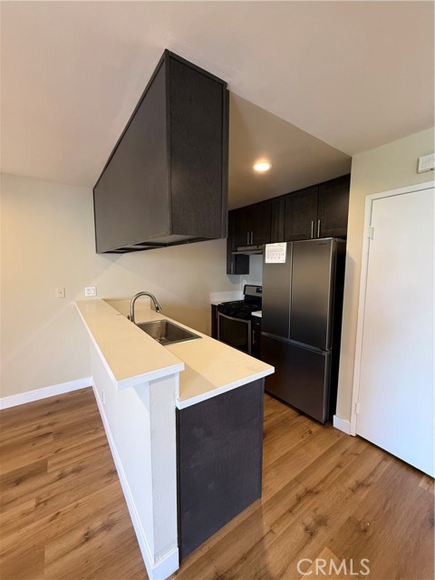 Updated 2BR/2BA unit for lease in desirable Glendale location. Features open floor plan with recessed lighting and wood-style flooring throughout. Modern kitchen with quartz-style counters, stainless steel appliances, contemporary cabinetry, and breakfast bar. Spacious bedrooms with mirrored closets. Updated bathrooms with modern finishes and glass shower enclosures. Includes central HVAC, private entry, community laundry, covered parking, and well-maintained common areas. Clean, bright, and move-in ready. Excellent lease opportunity close to shopping, dining, and transportation.