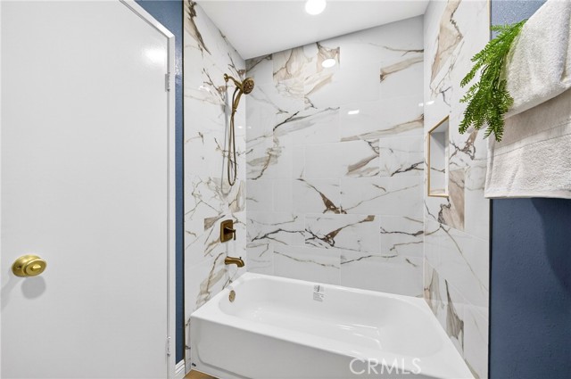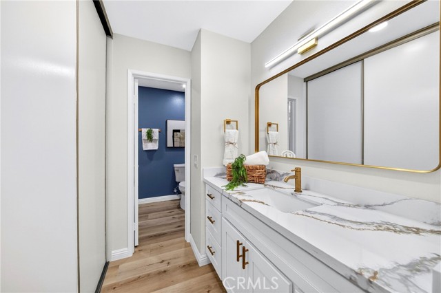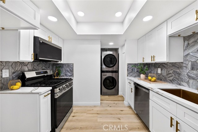 Welcome to this beautifully remodeled 2-bedroom, 2.5-bath condo nestled in the hills of Fullerton’s highly sought-after Westside community. This desirable two-story home offers a tranquil, resort-style setting surrounded by lush greenery, with access to a sparkling pool and relaxing spa that make every day feel like a getaway. Step inside to a bright and inviting living room featuring new SPC flooring and recessed lighting throughout. The formal dining area flows seamlessly into the updated kitchen, complete with brand-new appliances, elegant quartz countertops, and a center island—perfect for cooking and entertaining. A convenient half bath is located downstairs, along with a brand-new stackable washer and dryer (included in the sale) just off the kitchen. Upstairs, you’ll find two spacious primary suites with high ceilings, each offering its own fully renovated bathroom with contemporary finishes—providing comfort and privacy for residents and guests alike. Two assigned carports are conveniently located directly in front of the unit for easy access. HOA dues cover water, trash, fire insurance, and exterior maintenance for added peace of mind. Ideally located near Ralph B. Clark Regional Park, a golf course, grocery markets, restaurants, and major freeways, this home offers the perfect blend of comfort, convenience, and lifestyle.