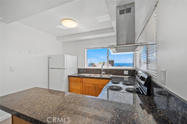 Light and bright one bedroom unit in the heart of down town Laguna Beach with ocean and Catalina sunset views. Remodeled apartment features newer bamboo kitchen cabinets, granite counter top, newer stainless steel range and stainless steal sink. The corner windows look out to the ocean, city lights and hills of North Laguna. The updated bathroom has a corner shower, newer cabinets, granite counter top and newer light fixture. Spacious walk-in closet with a built-in dresser. Assigned carport parking. Ideally located close to the beach, restaurants, shops and the world renown galleries in Laguna Beach.